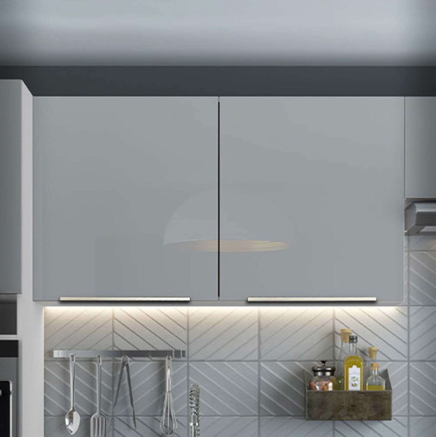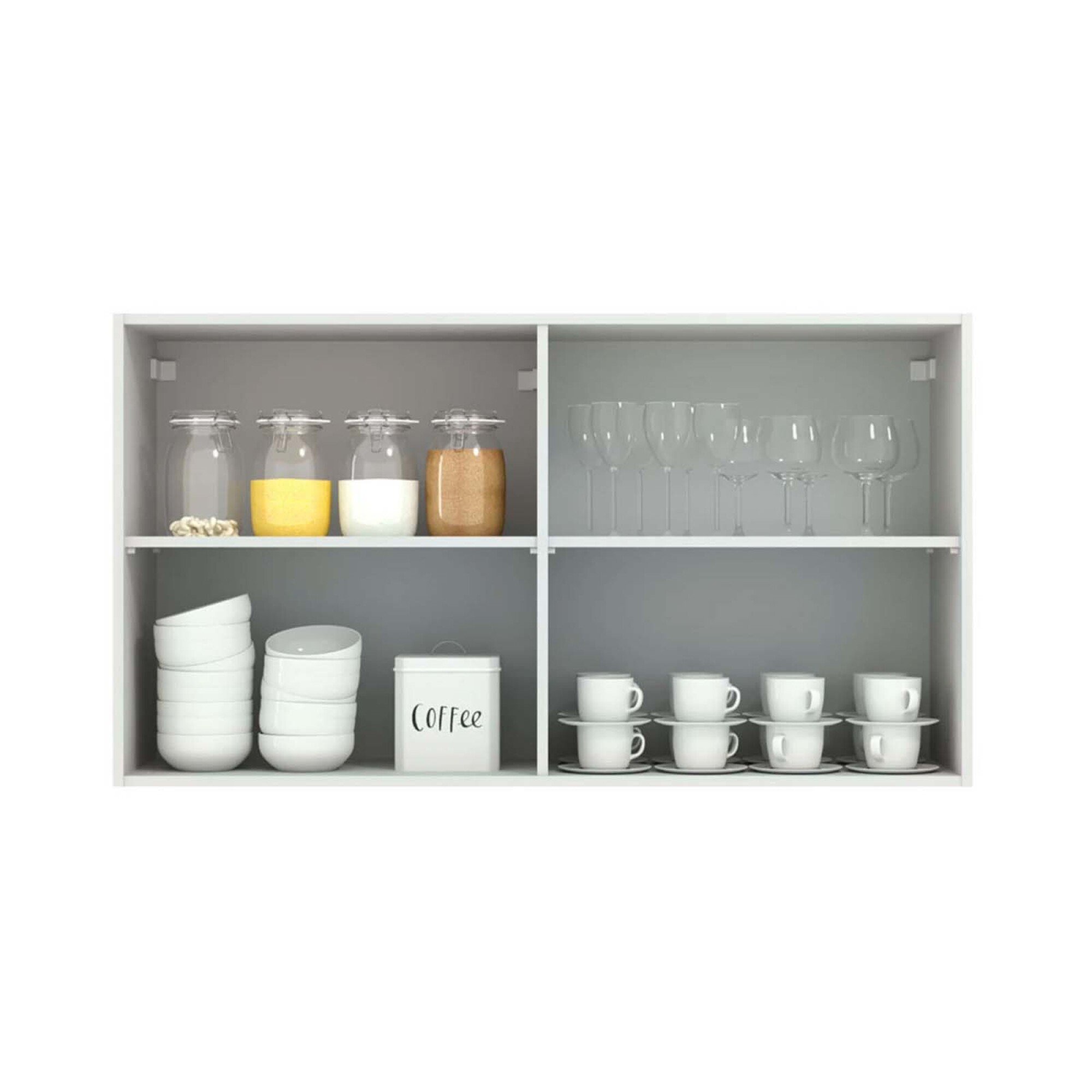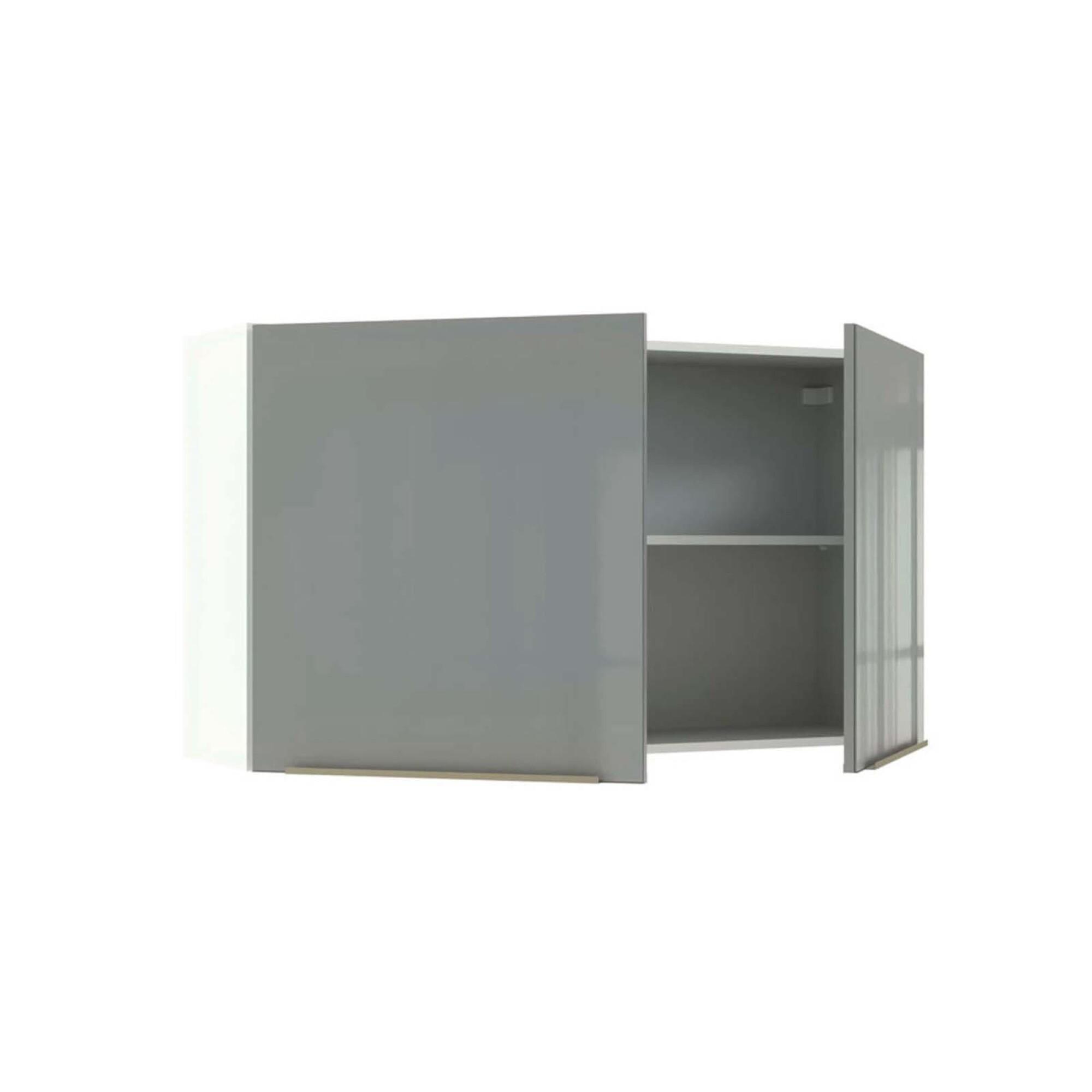 Aereo de 120 cm en MDP de 15mm y 18mm con acabado en pintura poliester de alta resistencia. 2 puertas de vidrio y cierre con freno. Tiradores en aluminio y visagras metálicas de 36mm..