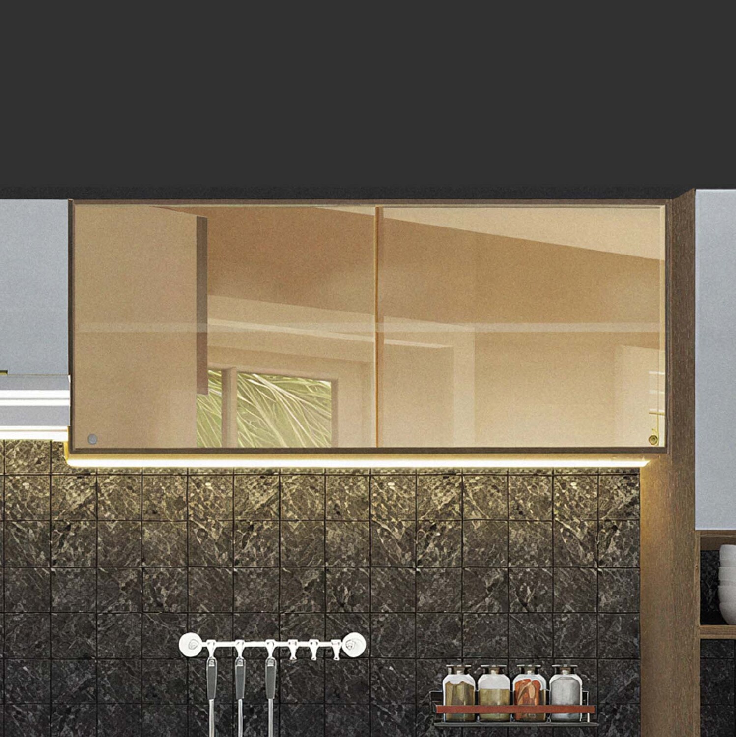 Aereo de 120 cm en MDP de 15mm y 18mm con acabado en pintura poliester de alta resistencia. 2 puertas corredizas de vidrio reflecta y cierre con freno. Tiradores en aluminio y visagras metálicas de 36mm.
