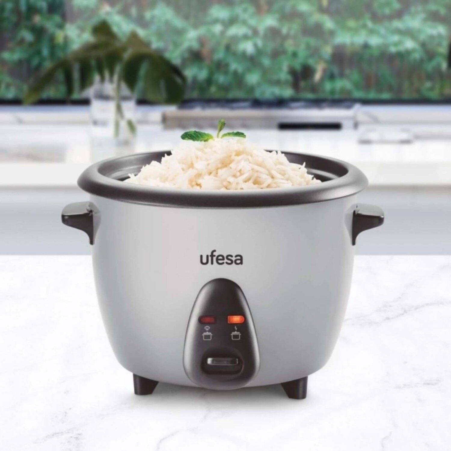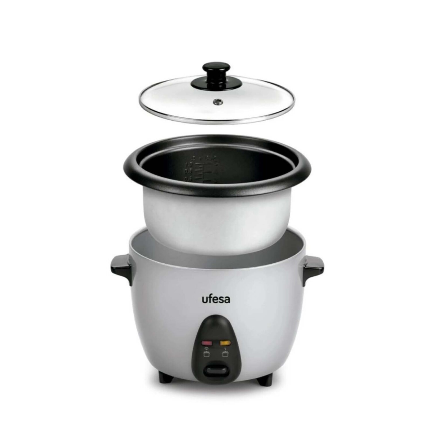 • Potencia: 400 W • Capacidad: 1 litro • Cubeta anti adherente extraíble • Función para mantener caliente a final de la cocción • Tapa de cristal • Accesorio: Vaso medidor y cuchara