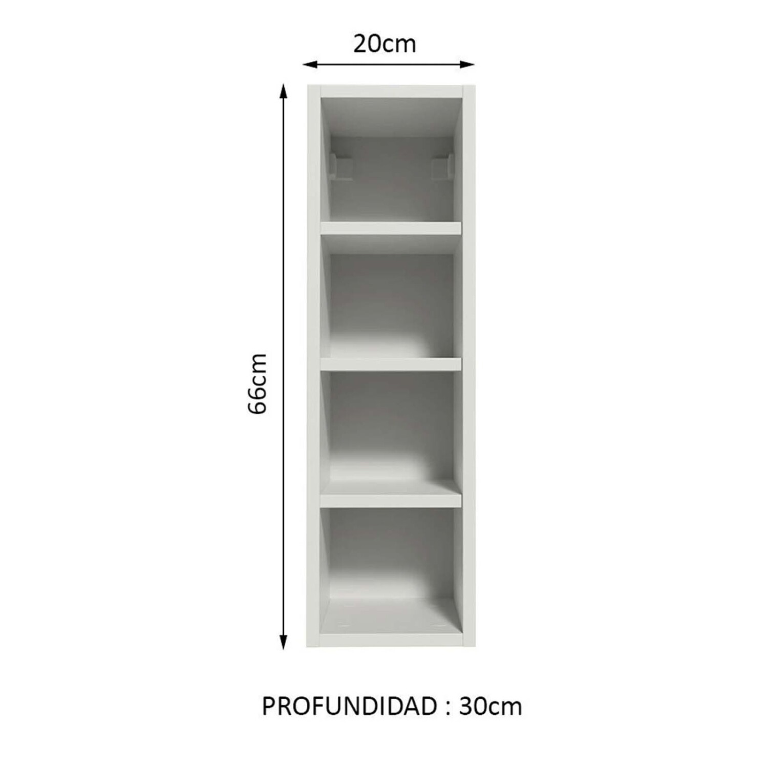 Nicho aéreo de cocina tipo botellero de 20cm de ancho, en MDP de 15mm con acabado en pintura poliester de alta resistencia.