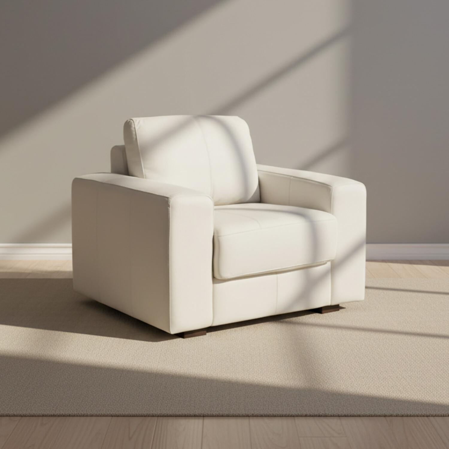 Butaca confeccionada en 100% cuero. Patas y estructura hechas en madera, relleno con espuma de alta densisdad. MANTENIMIENTO: - No exponer a luz solar directa ni a fuentes de calor - No utilizar productos a base de solventes o cualquier otro producto abrasivo - La utilización de productos de limpieza inadecuados puede resecar el cuero y causar daños irreparables. LIMPIEZA: - Líquidos deben ser removidos inmediatamente con un paño seco - Limpieza regular debe ser efectuada con un paño seco limpio - Para suciedades más severas utilizar un paño limpio humedecido en agua y jabón neutro.