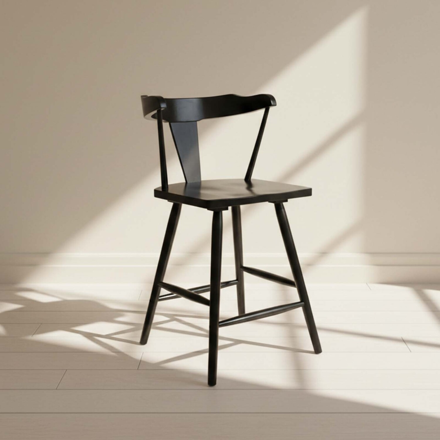 La butaca bar Westan en madera en color negro, con asiento cómodo y estructura de material detallado en madera, fabricada en madera maciza de caucho que aporta solidez y estabilidad. Su altura del piso al asiento 61.5 centímetros la hace ideal para barras de cocina o comedor, ofreciendo una postura equilibrada y funcional. Su diseño discreto se integra con facilidad en diferentes ambientes, aportando un toque contemporáneo y práctico al espacio.