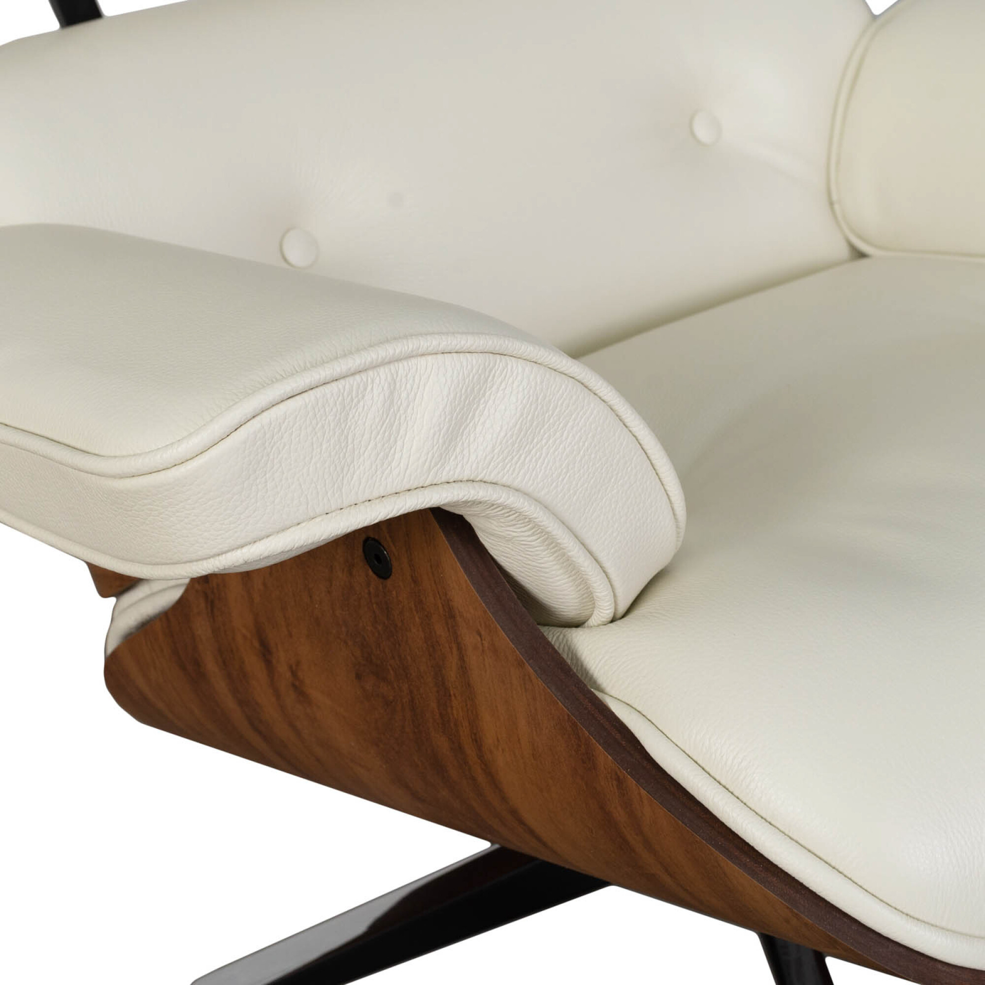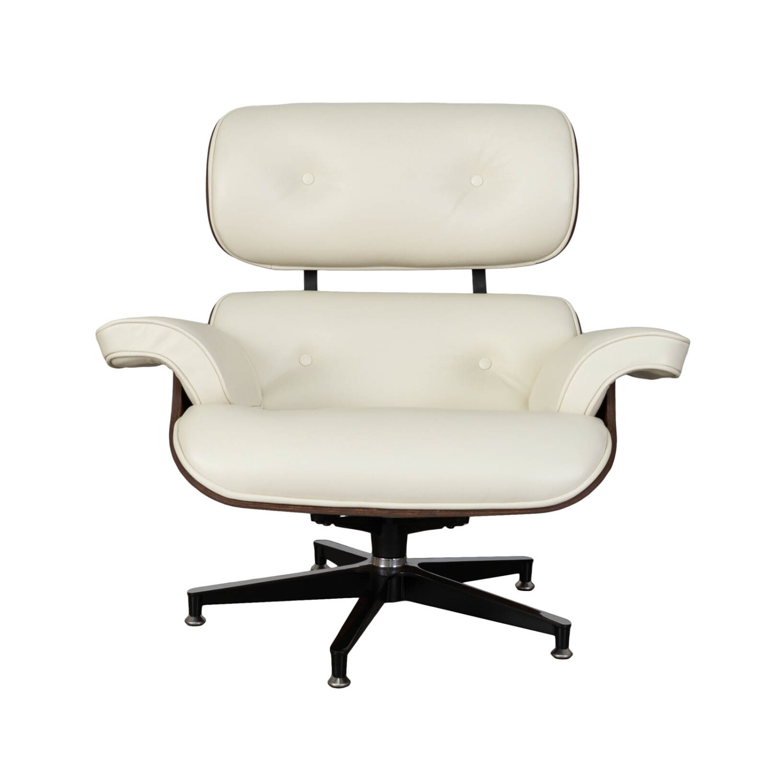 BUTACA C/PUFF - 1 CUERPO CUERO-100-NATURAL BLANCO EAMES