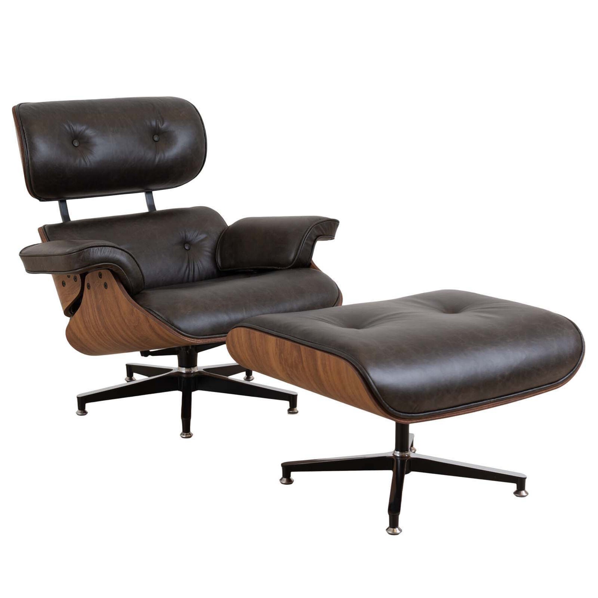 BUTACA C/PUFF - 1 CUERPO CUERO-100-NATURAL NEGRO EAMES