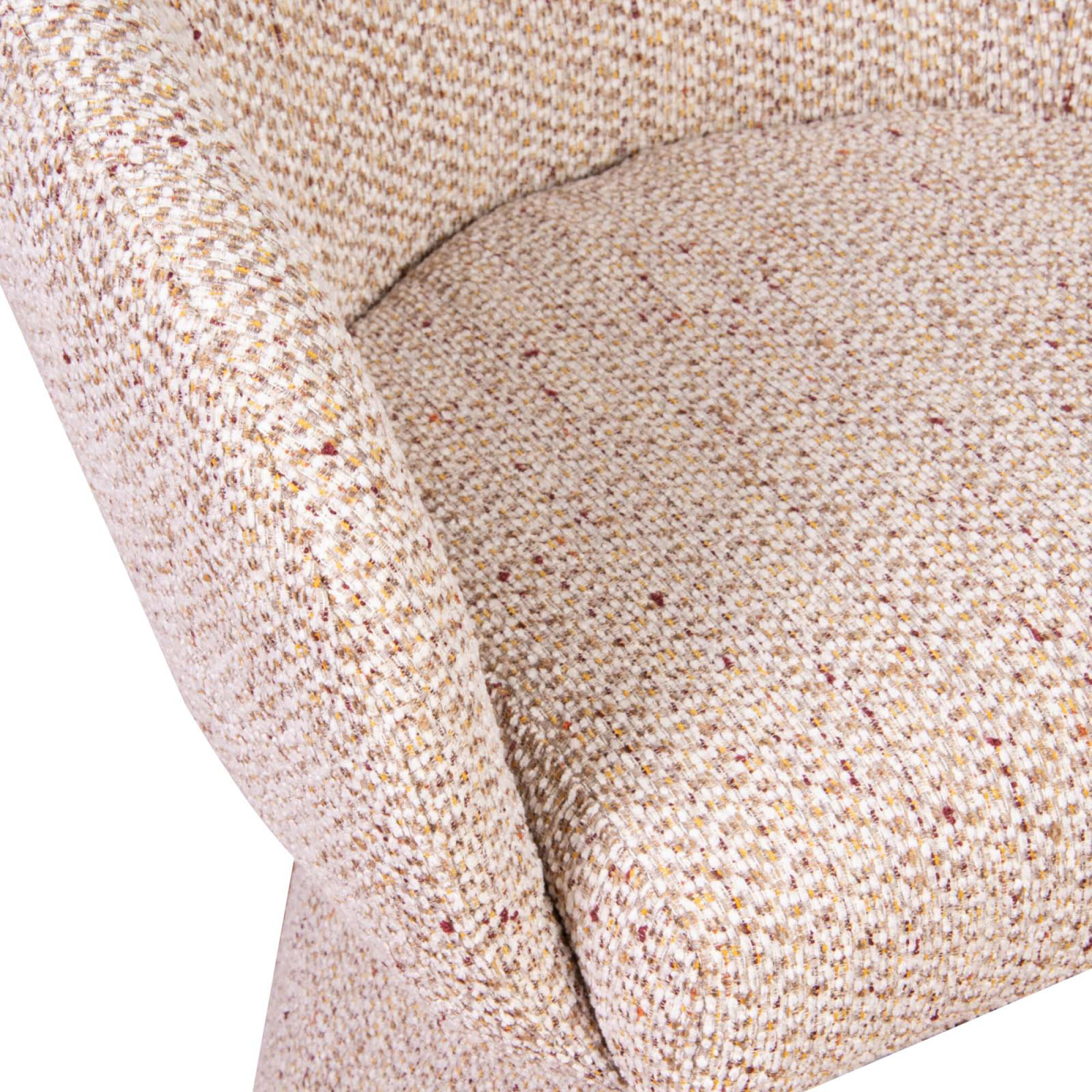 Butaca tapizada en tela premium, compuesta 100% en polyester. Estructura interna hecha en madera y plywood, relleno de espuma de alta densidad. 48CM de altura del piso al asiento. MANTENIMIENTO: - No exponer a luz solar directa ni a fuentes de calor - No utilizar productos a base de solventes o cualquier otro producto abrasivo - La utilización de productos de limpieza inadecuados puede resecar el cuero y causar daños irreparables LIMPIEZA: - Líquidos deben ser removidos inmediatamente con un paño seco - Limpieza regular debe ser efectuada con un paño seco limpio - Para suciedades más severas utilizar un paño limpio humedecido en agua y jabón neutro.