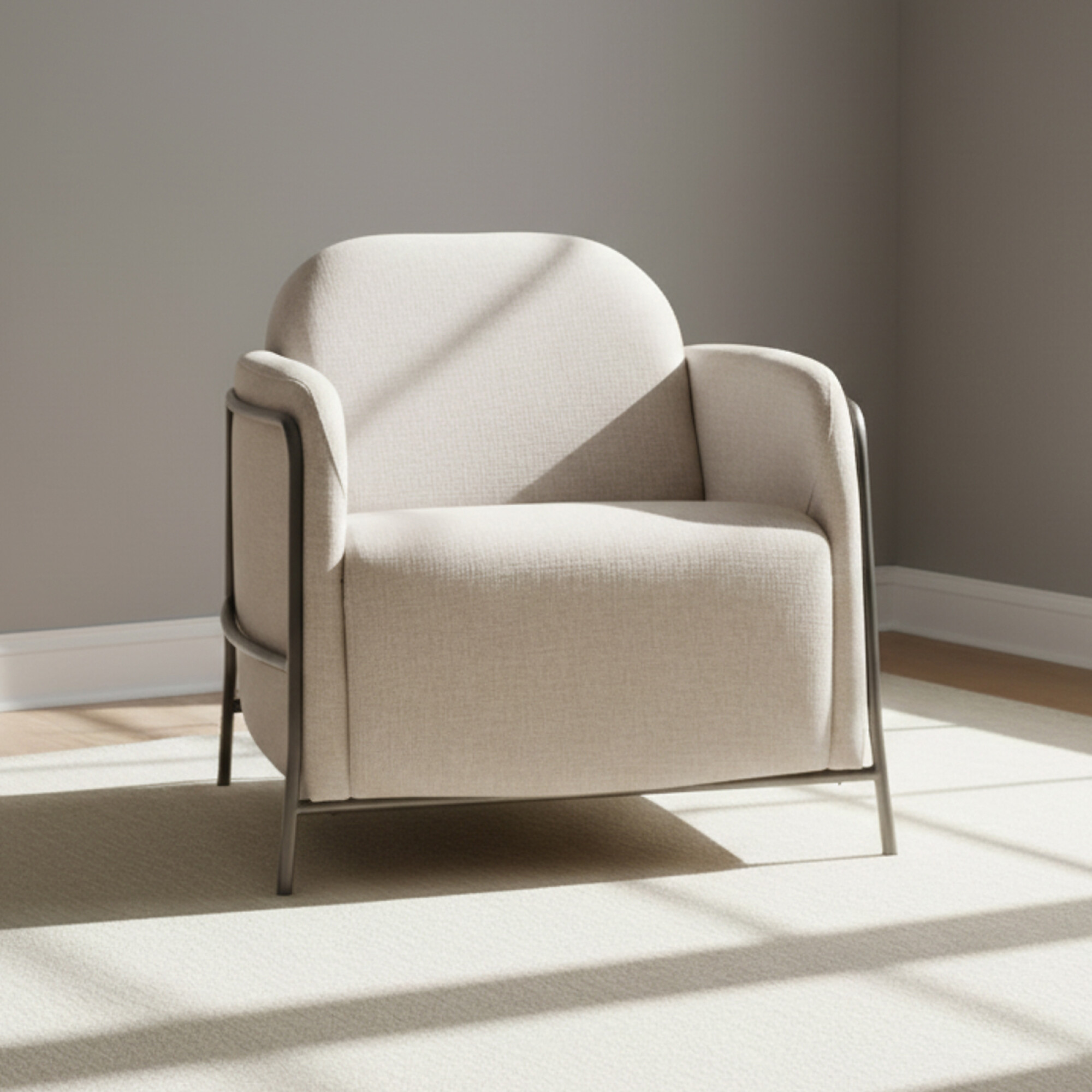 La butaca ASHLEY, de diseño contemporáneo, es una pieza que aporta personalidad a tu espacio. Tapizada en color natural, combinado con una base de acero color champagne con pintura epoxi, que brinda resistencia, estabilidad y un acabado sofisticado. El asiento, confeccionado con espuma de densidad 28, ofrece un confort equilibrado. De líneas suaves, es una butaca pensada para sumar estilo y calidez a livings, dormitorios o espacios de lectura, con una estética moderna y atemporal.