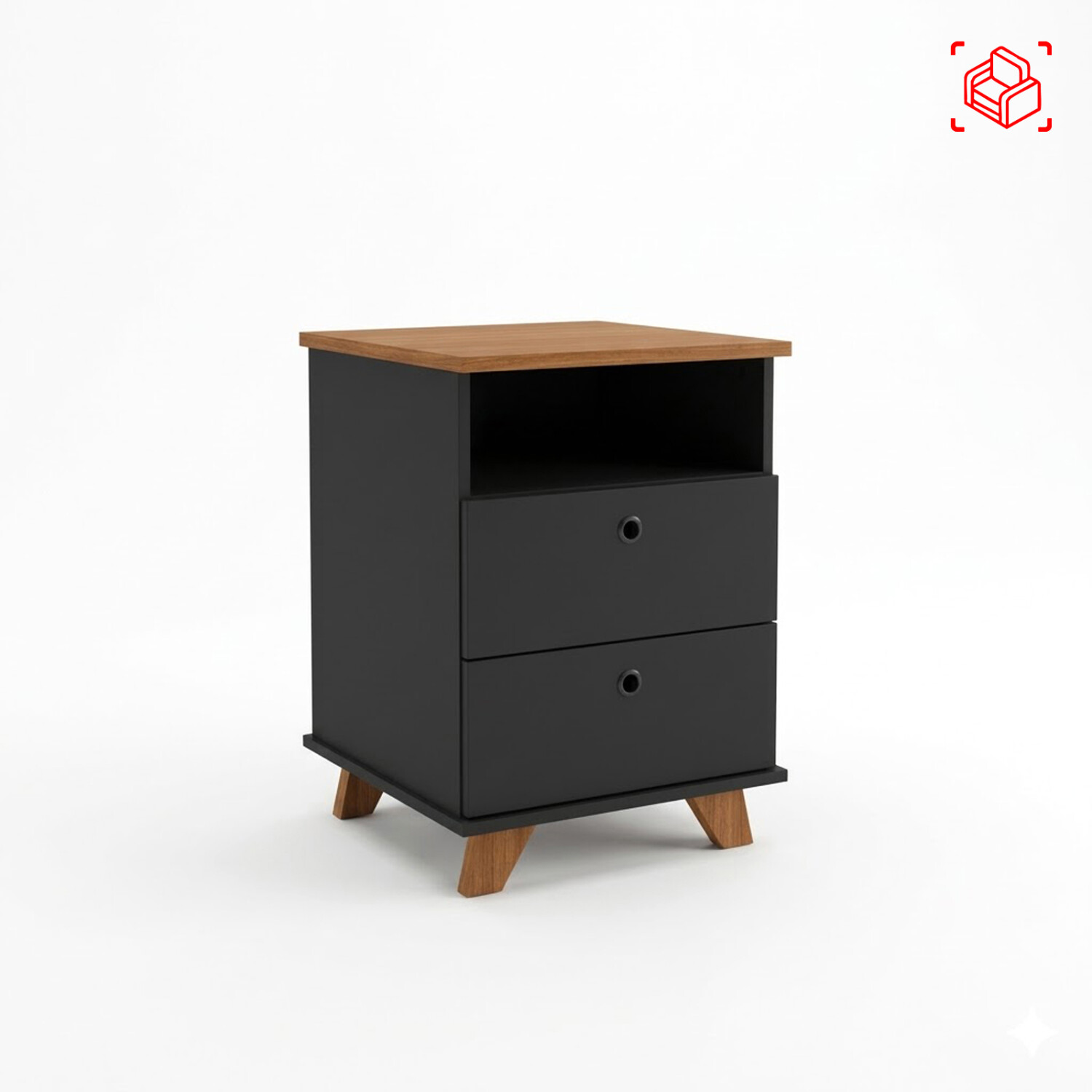 Cajonera hecha en MDF, cuenta con 2 cajones con tiradores telescopicos y un nicho de guardado abierto. Patas estilo retro. Hace juego con el escritorio SKY y biblioteca PLUS.