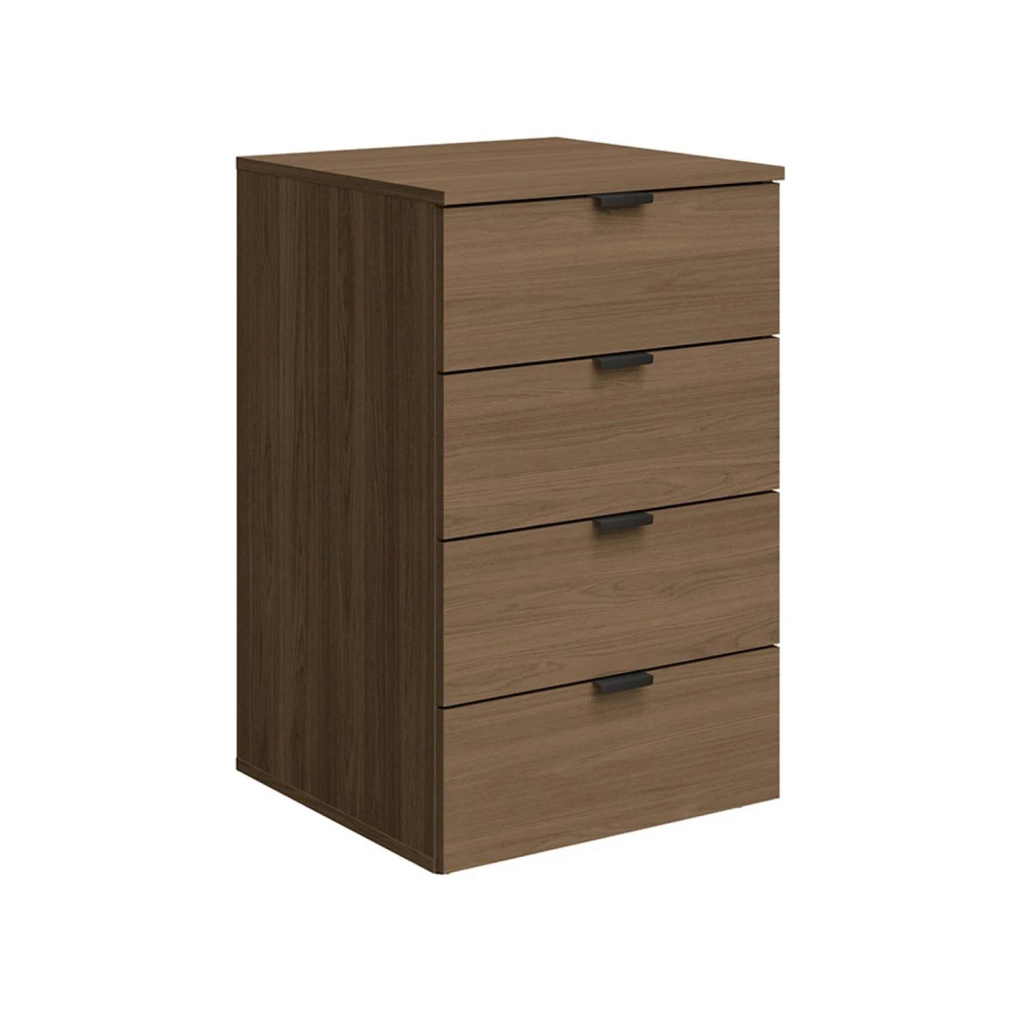 Cajonera en MDP, terminacion en melamina. 4 cajones. Con llave, tiradores y rieles metalicos.