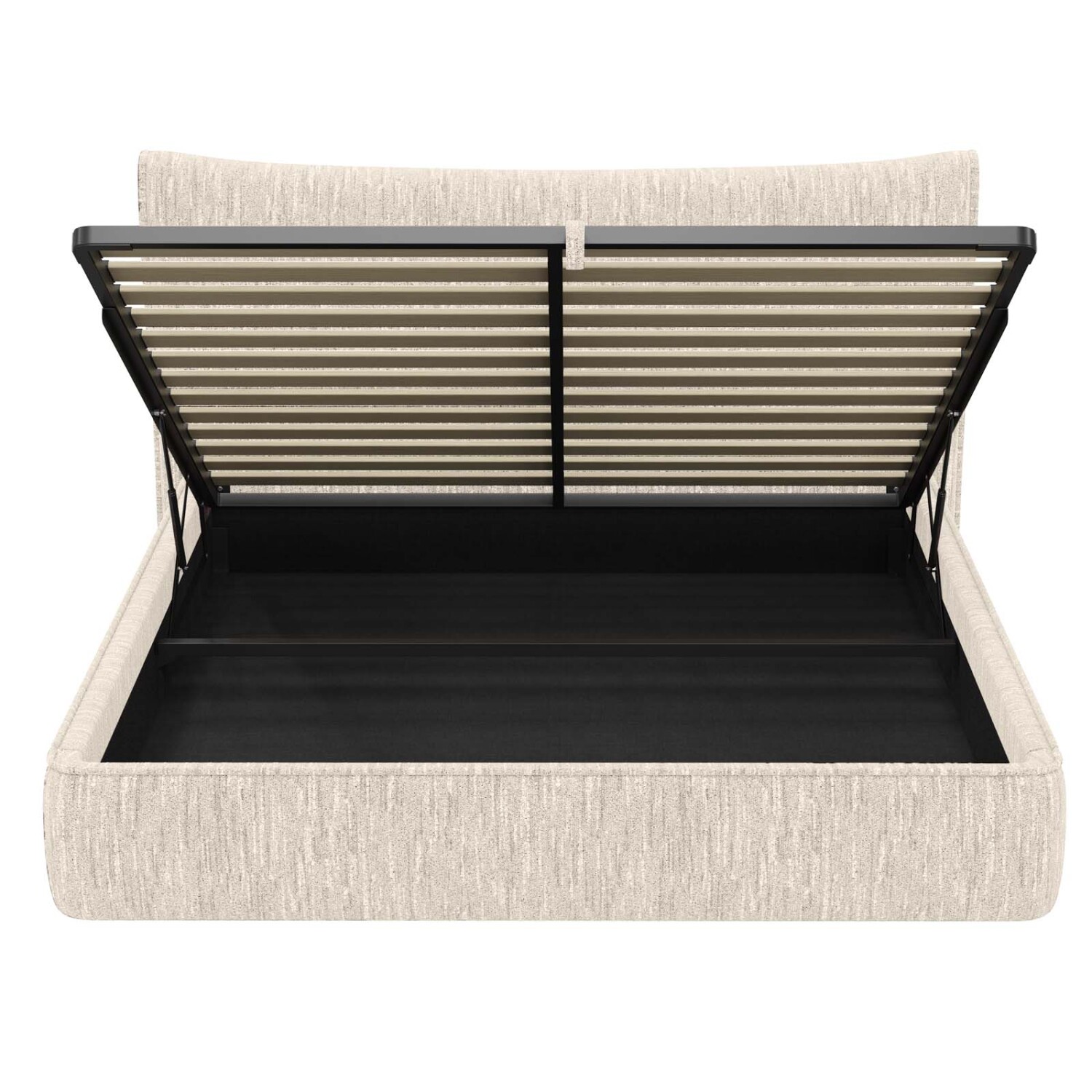 CAMA C/BAÚL - 2 PLAZAS MADERA-Y-TELA NATURAL-BEIGE ZAFIRO