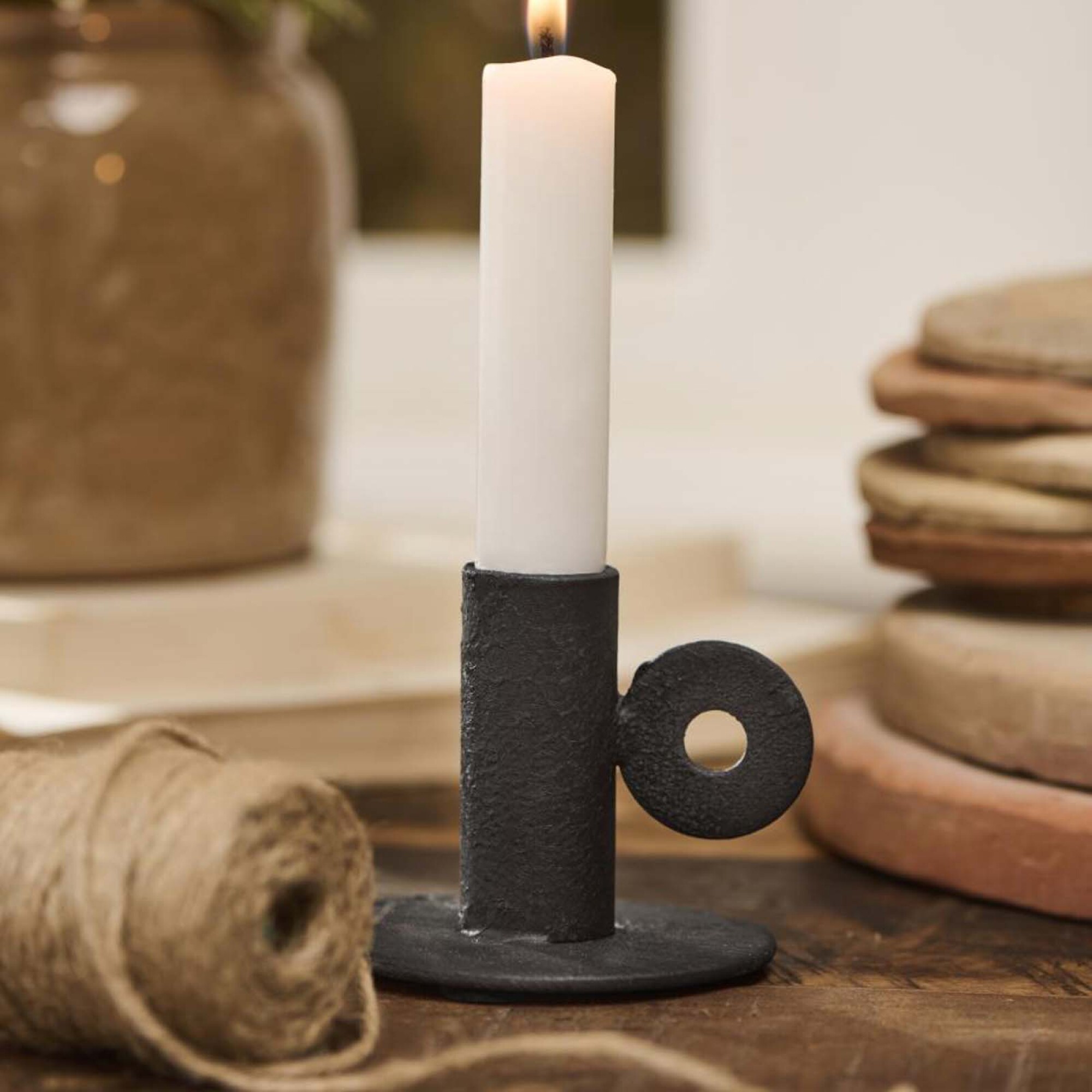El candelabro modelo 90153-14 en color marrón oscuro presenta un diseño clásico y funcional, pensado para velas de 2.2 cm de diámetro. Cuenta con un asa que facilita su transporte, añadiendo un toque práctico y decorativo. Su acabado en tono turku marrón le aporta calidez y elegancia, ideal para crear ambientes íntimos y acogedores. Esta pieza combina tradición y estilo, siendo perfecta para complementar cualquier espacio con un detalle rústico y sofisticado.