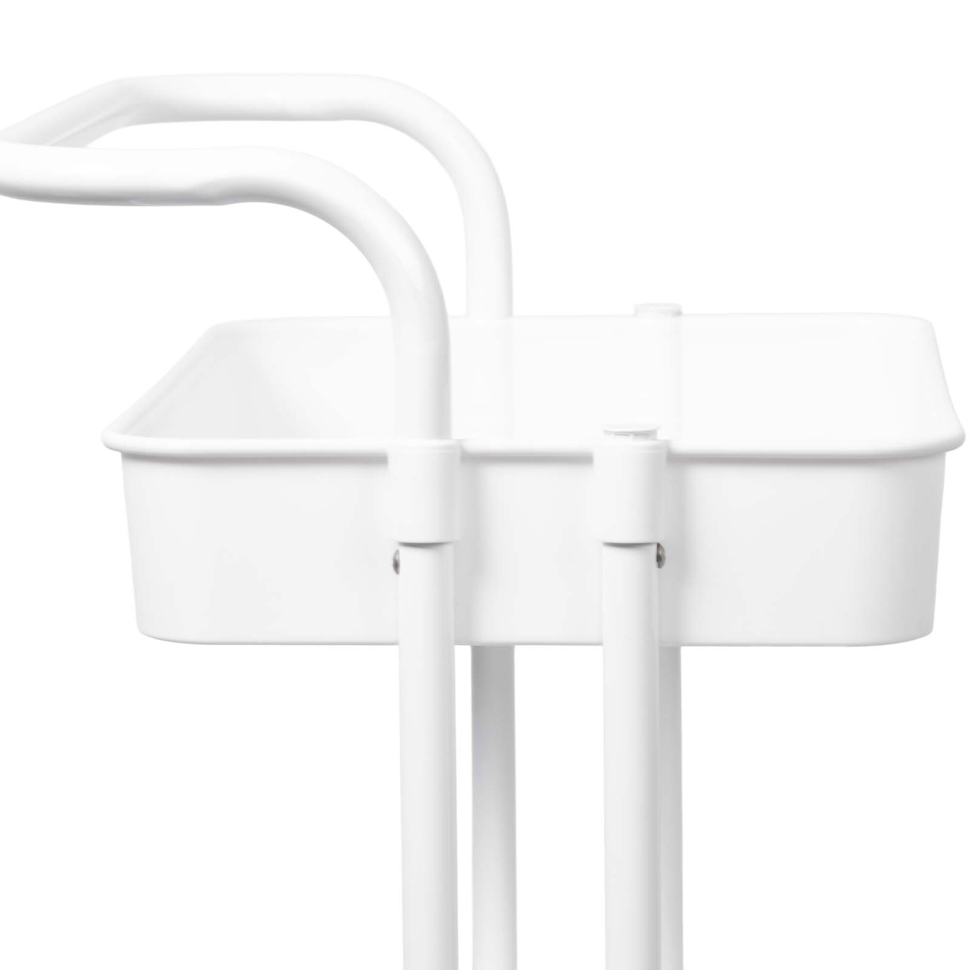 "Carrito organizador de polipropileno en color blanco o negro. Resistente y moderno, ideal para cocina, baño o lavandería. Su diseño con ruedas giratorias permite moverlo fácilmente y sus estantes abiertos facilitan la visualización y acceso a los productos. Medidas: 43x37x86cm de alto."
