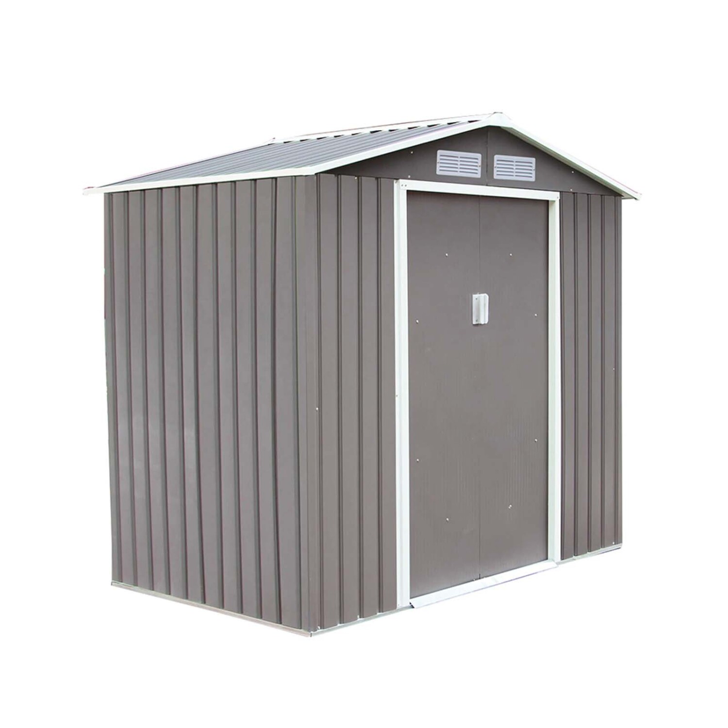 Espacioso, fuerte y duradero. Diseño simple pero elegante. Techo a dos aguas permite drenaje rápido de la lluvia. Panel de acero galvanizado por inmersión en caliente prepintado doble de 0.25 mm. Marco de acero znic galvanizado en caliente de 0.5-0.8 mm. 4 respiraderos patentados para lluvia proporcionan buena ventilación y luz. 2 puertas corredizas anchas y lisas con rampa proporcionan una entrada fácil para objetos grandes. Manijas de puerta con cerradura únicas (candado no incluido). No necesita mantenimiento. Fácil ensamblado.