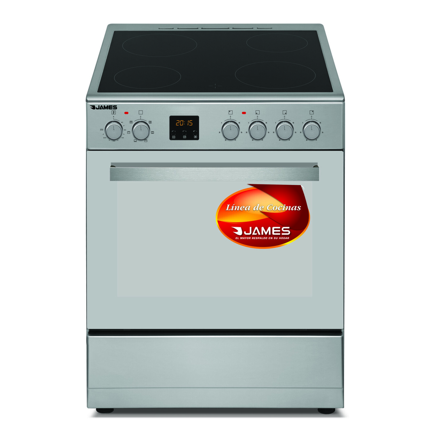 Eléctrica. Vidrio doble en puerta de horno. Luz en el horno. 4 placas vitrocerámicas. Horno eléctrico 6 funciones. Perillas silver. Manija en Acero Inoxidable. Timer digital. 2 bandejas esmaltadas (asaderas). Soportes laterales para bandeja. Convección Garantía: 1 Año.