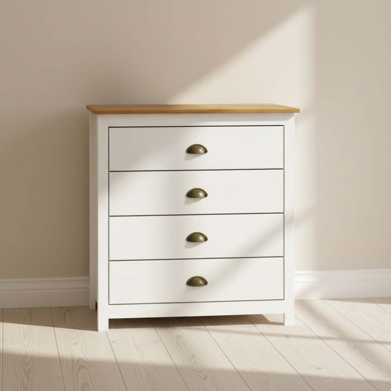 Cómoda - 4 CAJONES PINO NATURAL-BEIGE TOPAZIO
