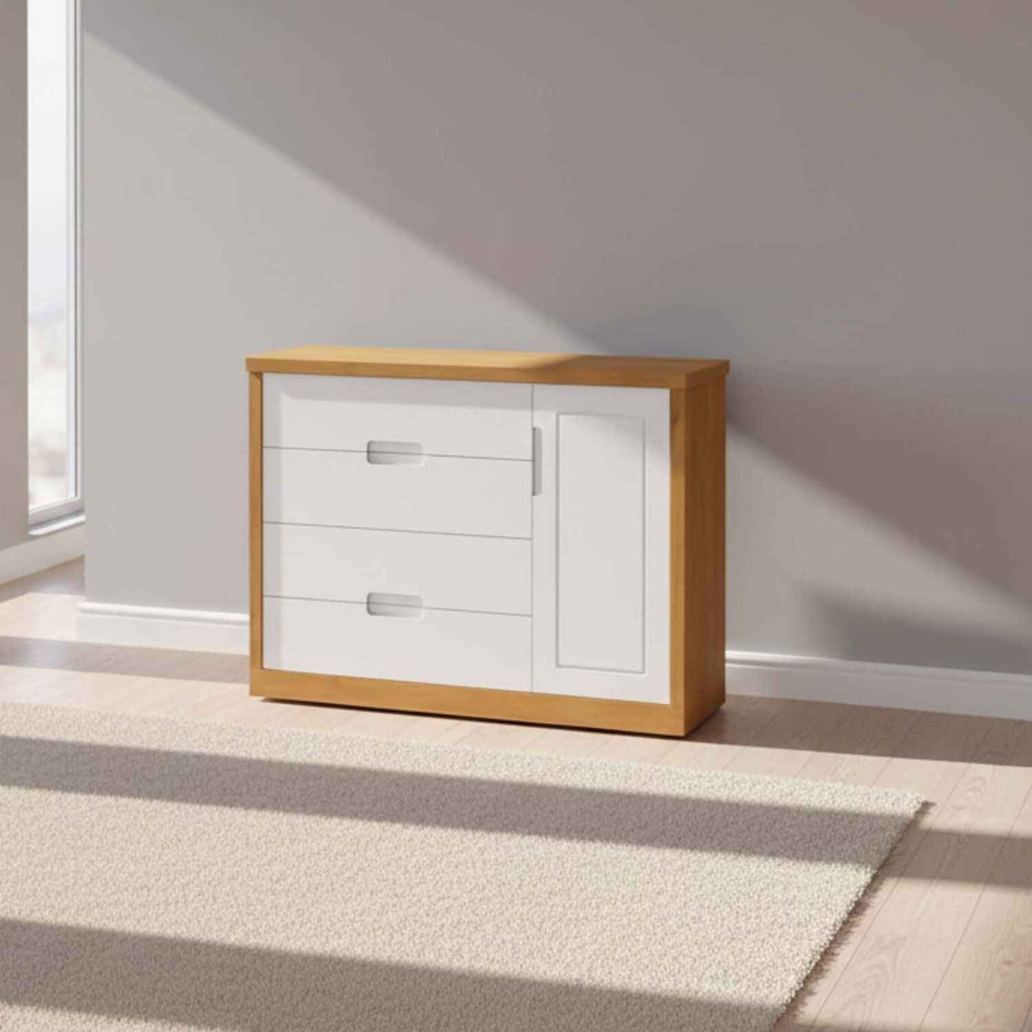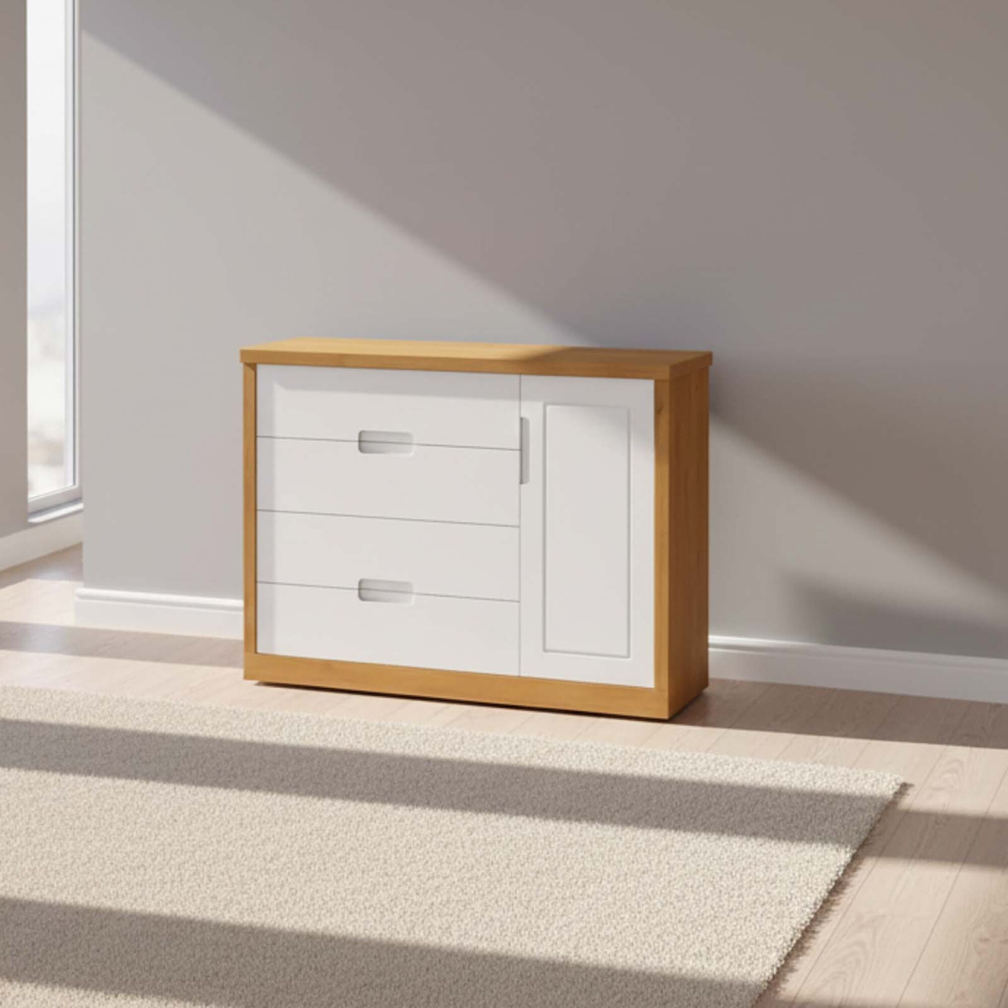 CÓMODA CAJONERA - 4 CAJONES MDF-Y-MADERA BLANCO TUTTO