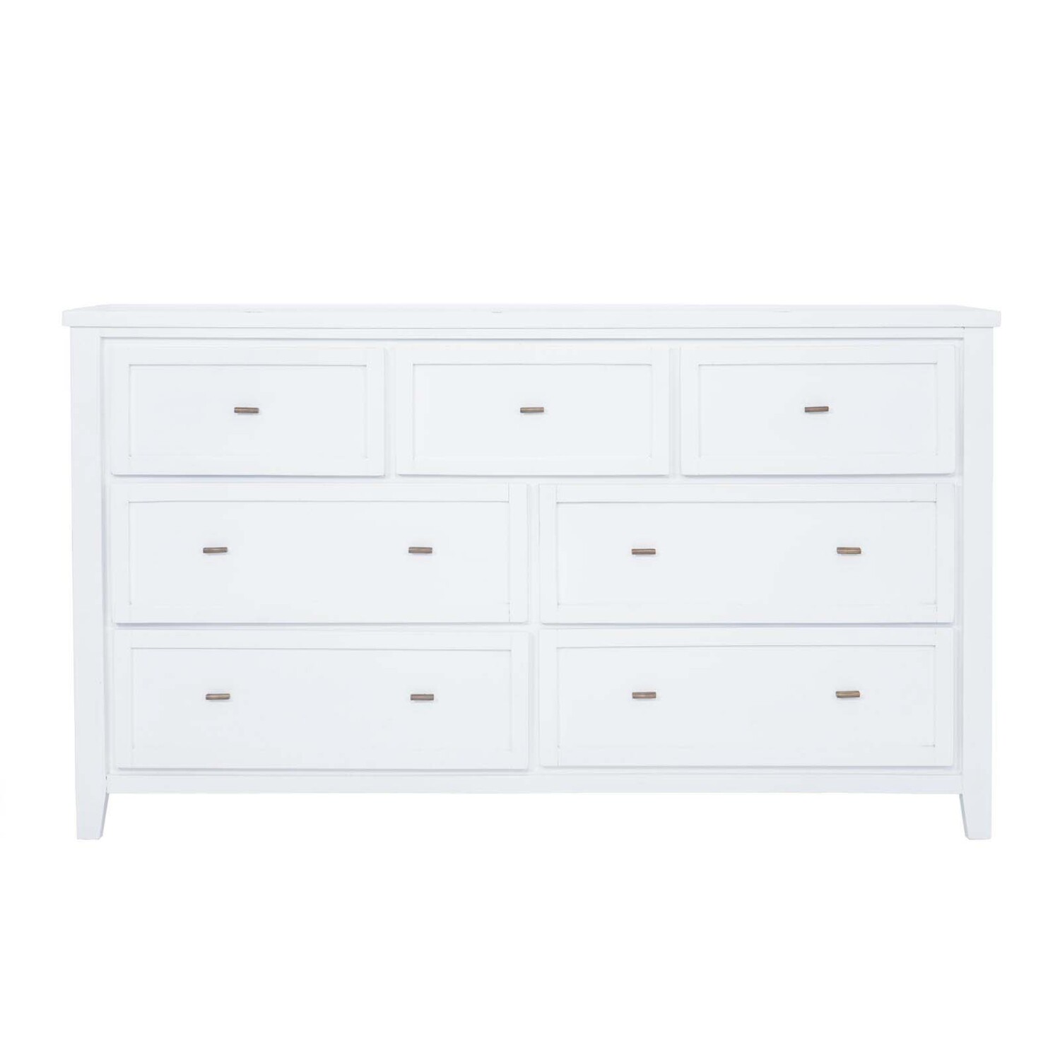 La Cómoda 7 cajones en madera de mango blanco Milan es una cómoda tradicional que combina diseño sofisticado y funcionalidad, ideal para quienes buscan cómodas elegantes y prácticas. Fabricada en madera maciza de mango, con medidas de 158 cm de largo, 91 cm de alto y 45 cm de ancho, ofrece una estructura sólida y resistente. Su acabado en color blanco aporta luminosidad y una sensación de amplitud, creando una atmósfera relajada en el dormitorio. Dispone de 7 cajones, 4 amplios y 3 superiores más pequeños, que permiten organizar ropa y accesorios con comodidad, mientras que los tiradores metálicos añaden un toque de estilo discreto y actual. Completa tu espacio con la mesa de luz Milan y disfruta de un conjunto armonioso que realza tu decoración y te invita a elegir esta cómoda como la próxima protagonista de tu habitación.