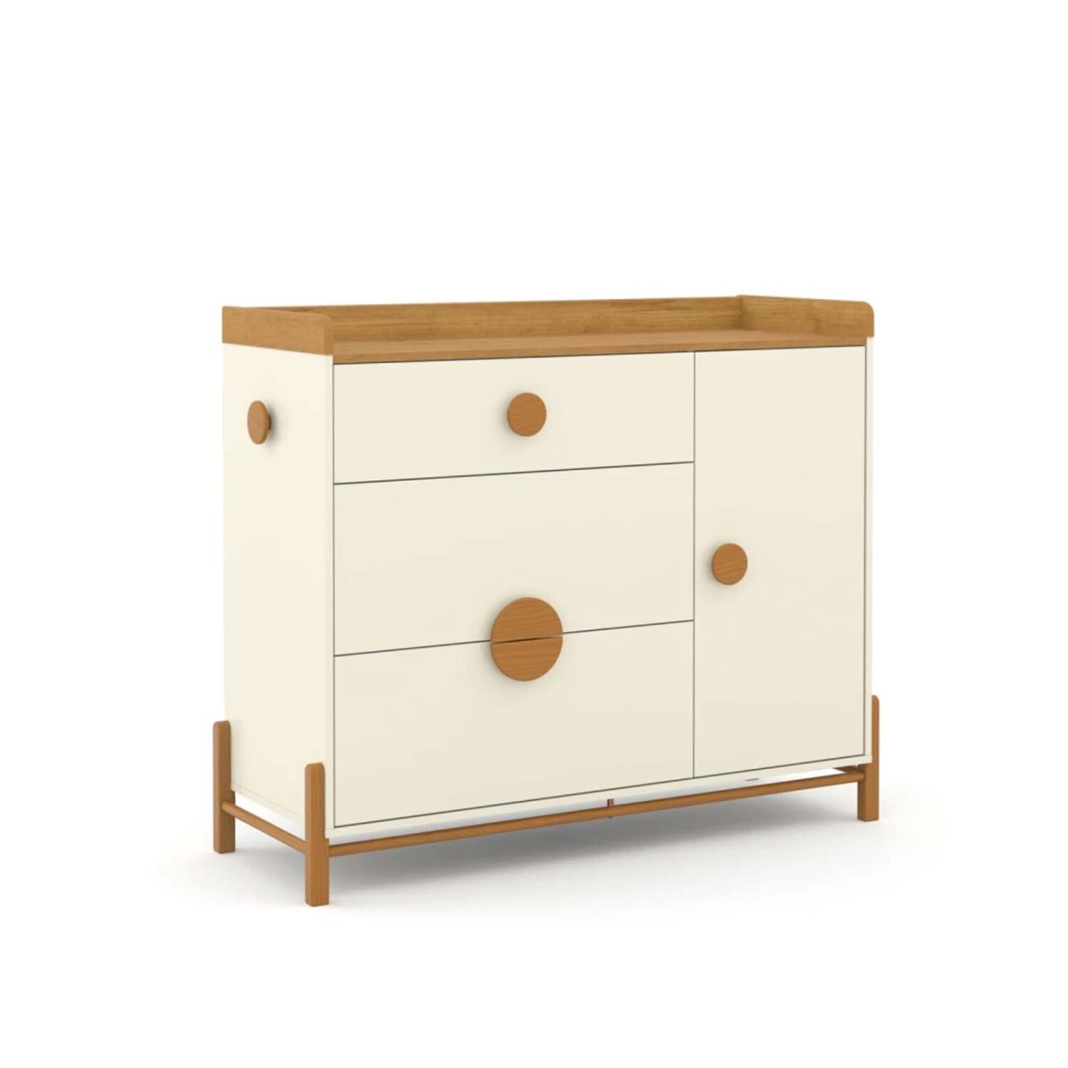 Cómoda fabricada en 100% MDF y base estructural en madera de pino. Diseñado con una puerta, tres cajones con rieles telescópicos, divisores en el cajón superior y perchero en el lateral. Sus tiradores circulares en madera le dan un diseño juvenil y fresco a la habitación. Encontra todas las opciones disponibles de la línea TESS en web y sucursales para complementar con la cómda. Línea completa para que la habitación quede hermosa y funcional.
