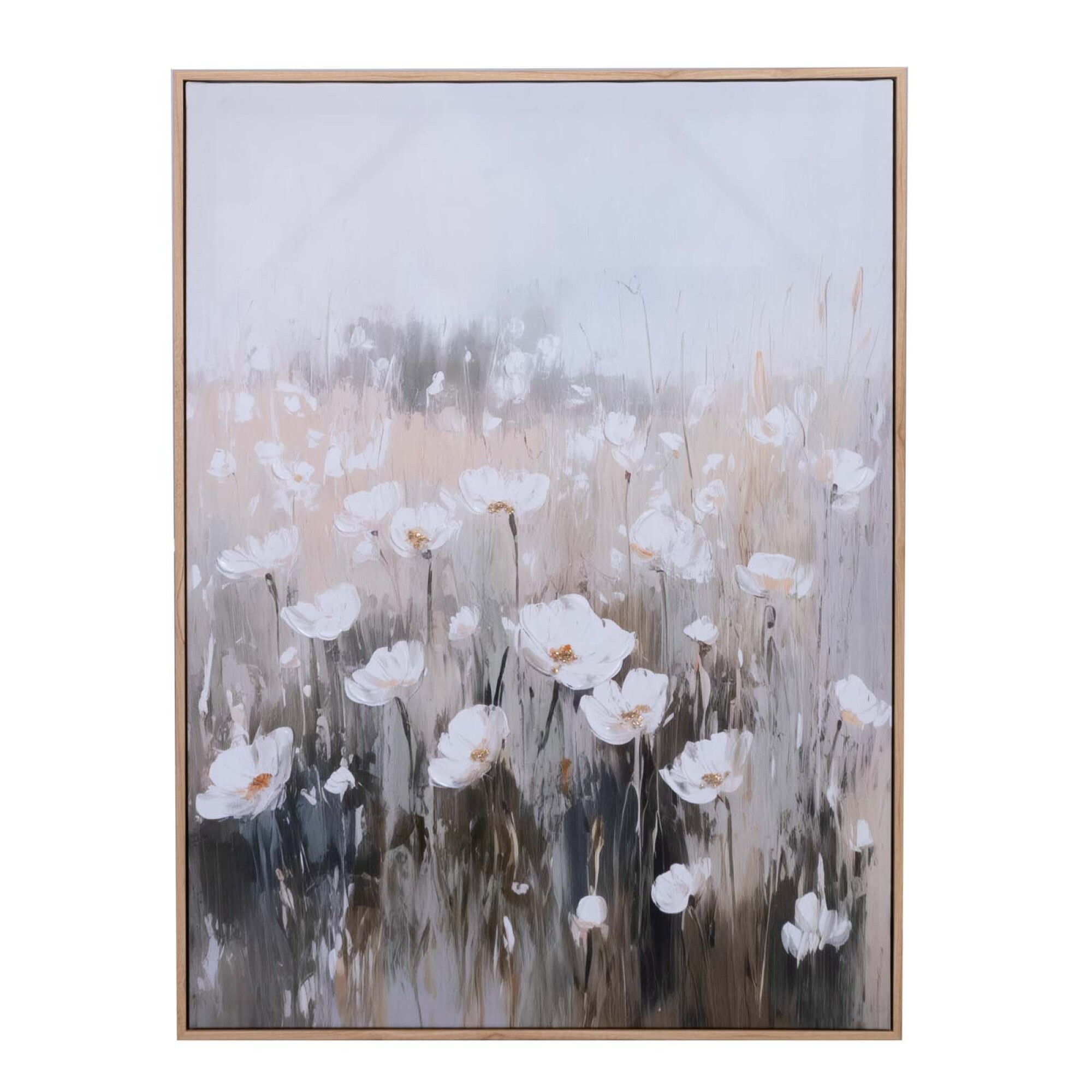 Cuadro decorativo de 60x80cm impreso en lienzo con acabado a mano, lámina metálica y marco de PS
