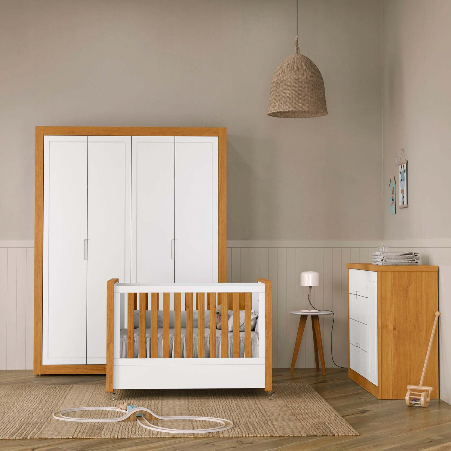 Cuna convertible en mini cama que acompaña los primeros años. Fabricada en 100% MDF, estructura en madera de pino y ruedas metalicas. Colchón sugerido: 70*130cm. ¡Encontrá nuestra línea TUTTO en web y sucursales que acompañen el estilo de esta cuna! Tenemos diferentes tipos de cómodas, camas marineras, cuna convertible, escritorio/tocador, mueble organizador, baúl de juguetes y placares que dejaran la habiación hermosa y funcional.
