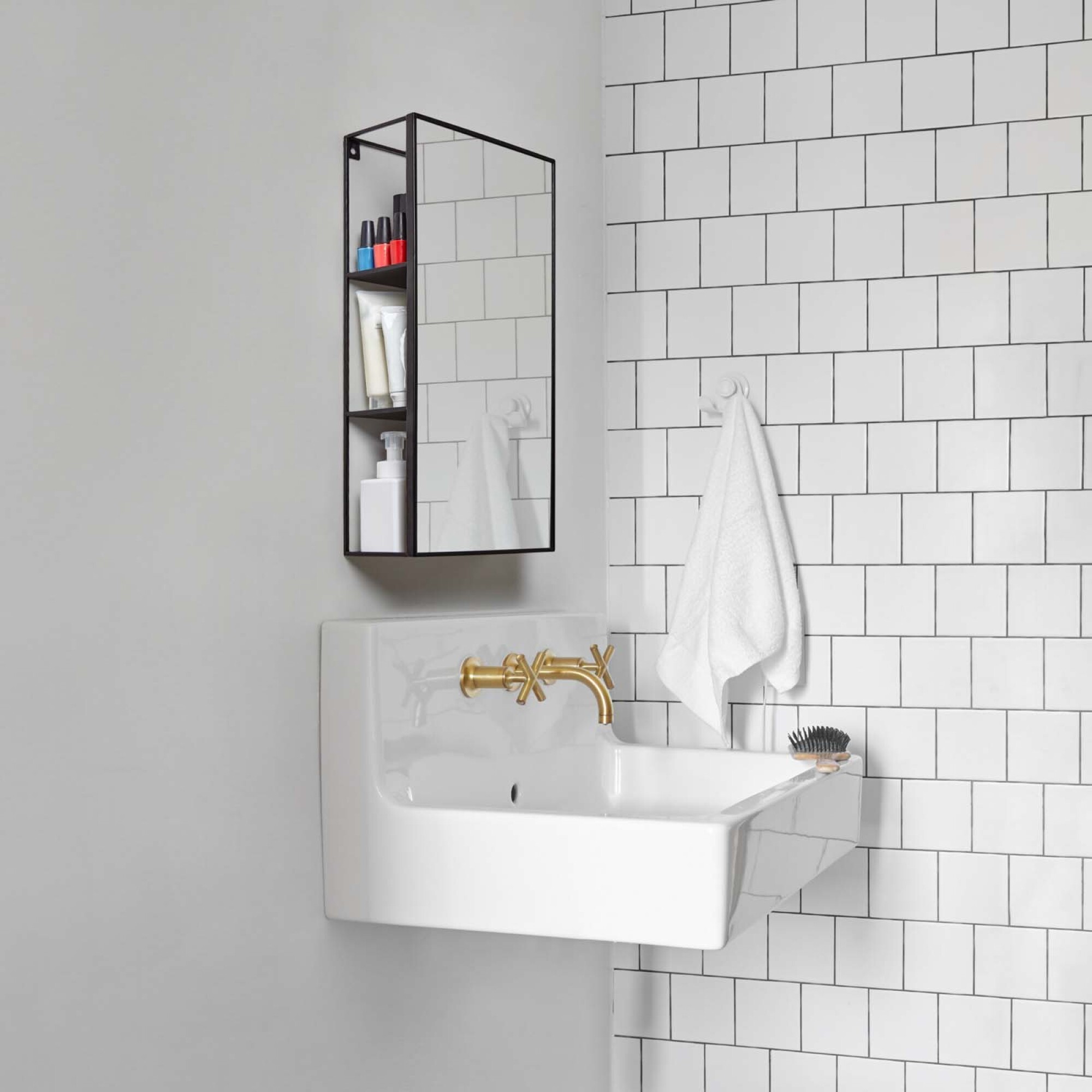 Cubiko, una versión moderna del botiquín tradicional, está compuesto por un espejo y una unidad de almacenamiento diseñada para aprovechar al máximo los espacios pequeños. Detrás del espejo de Cubiko hay cómodas repisas de almacenamiento para tomar fácilmente los objetos desde cualquiera de los lados. Este innovador diseño hace que Cubiko sea ideal para guardar accesorios de baño, objetos básicos como llaves de auto y lentes de sol, y mucho más. Mide 30 x 13 x 62 cm. Este espejo está fabricado con un acabado ecológico. Produce un 85 % menos de agua y residuos sólidos que los acabados galvanizados tradicionales. Marca: Umbra