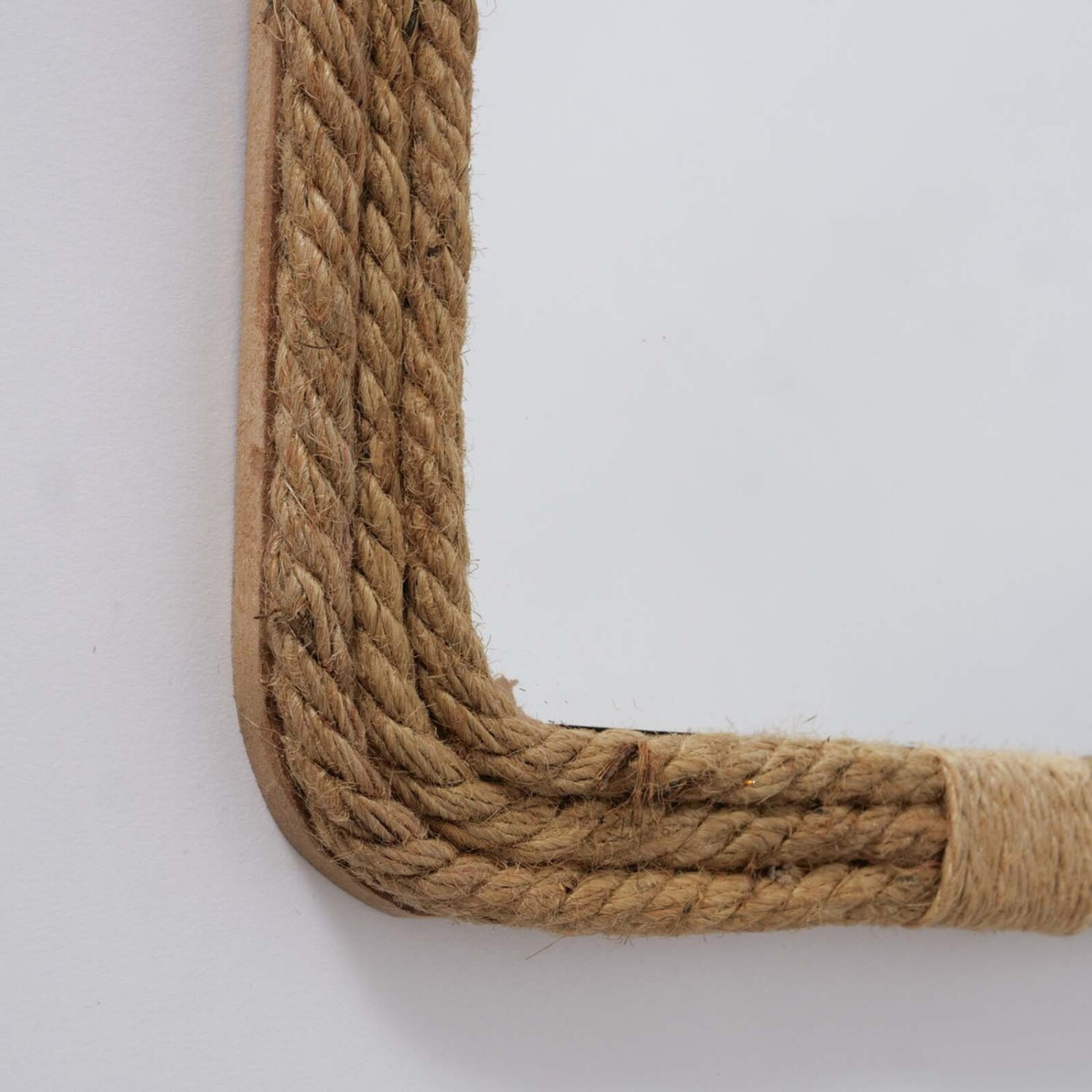 El Espejo de Pared Nodo es una pieza decorativa y funcional, diseñada para ser colgada en la pared. Hecho de MDF con un acabado en madera natural, este espejo tiene un toque rústico gracias a los detalles de yute (30%) que adornan su estructura. Su forma es rectangular, con unas medidas de 31 cm de altura, 25 cm de ancho y 2,2 cm de profundidad, lo que lo hace ideal para pequeños espacios o como un accesorio decorativo en cualquier habitación. El espejo está fabricado con vidrio espejado, lo que garantiza una clara reflexión, y su diseño de un solo color mantiene un estilo minimalista y natural. Además, es una pieza hecha a mano con técnica de nudos, lo que asegura su exclusividad. Este espejo no es apto para exteriores, ya que no es resistente al clima, y es adecuado solo para uso en interiores. Viene con un colgador para facilitar su instalación en la pared. Con su diseño simple pero elegante, el Espejo de Pared Nodo añade un toque de estilo natural a cualquier espacio, ya sea en el salón, el pasillo o incluso en el dormitorio.