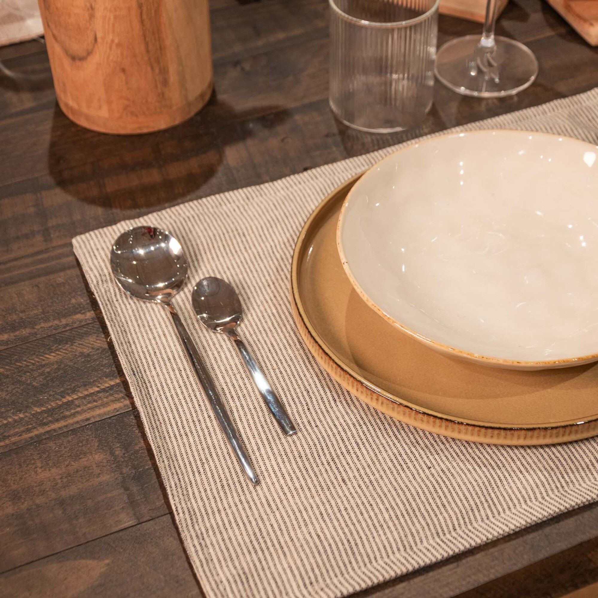 INDIVIDUAL LINEAS - LINO-Y-ALGODON GRIS ALGODÓN Y LINO