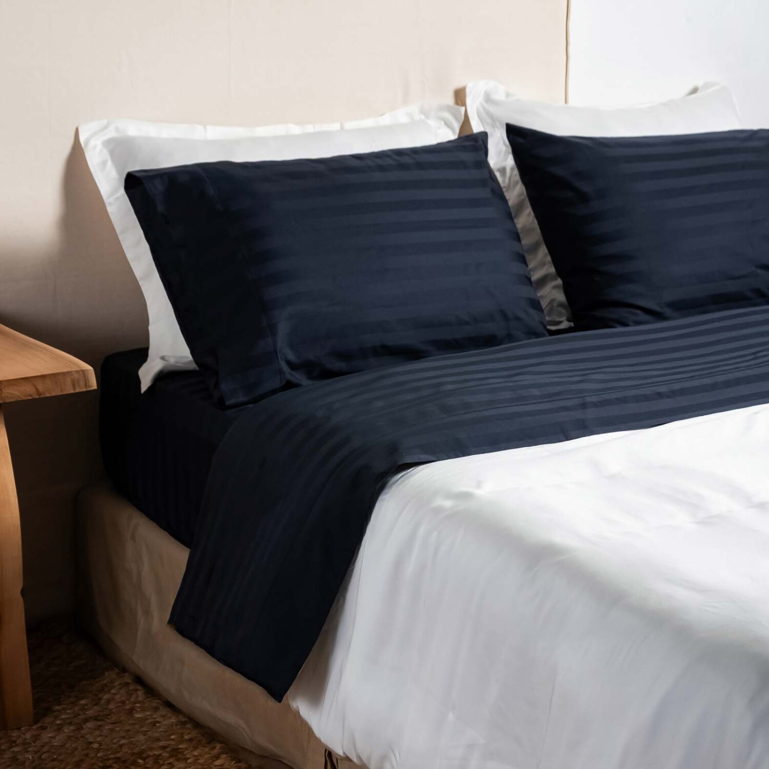 QUEEN ALGODON AZUL HOTELERAS 500 HILOS MARINO