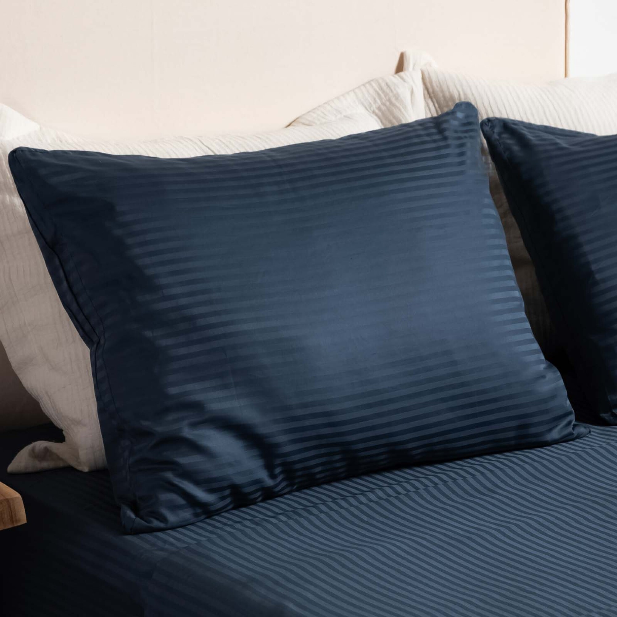"Juego de sábanas 100% algodón 300 hilos. Incluye sábana bajera, sábana encimera y funda de almohada. 1 Plaza: sábana bajera de 190x90x38cm, sábana encimera 240x160cm y 1 funda de almohada 50x70cm. 2 Plazas: sábana bajera de 190x140x38cm, sábana encimera 250x240cm y 2 fundas de almohadas de 50x70cm. Queen: sábana bajera de 200x160x38cm, sábana encimera 260x260cm y 2 fundas de almohada de 50x70cm. King: sábana bajera de 200x180x38cm, sábana encimera 260x280cm y 2 fundas de almohadas 50x90cm. Super King: sábana bajera de 200x200x38cm, sábana encimera 270x300cm y 2 fundas de almohadas 50x90cm."