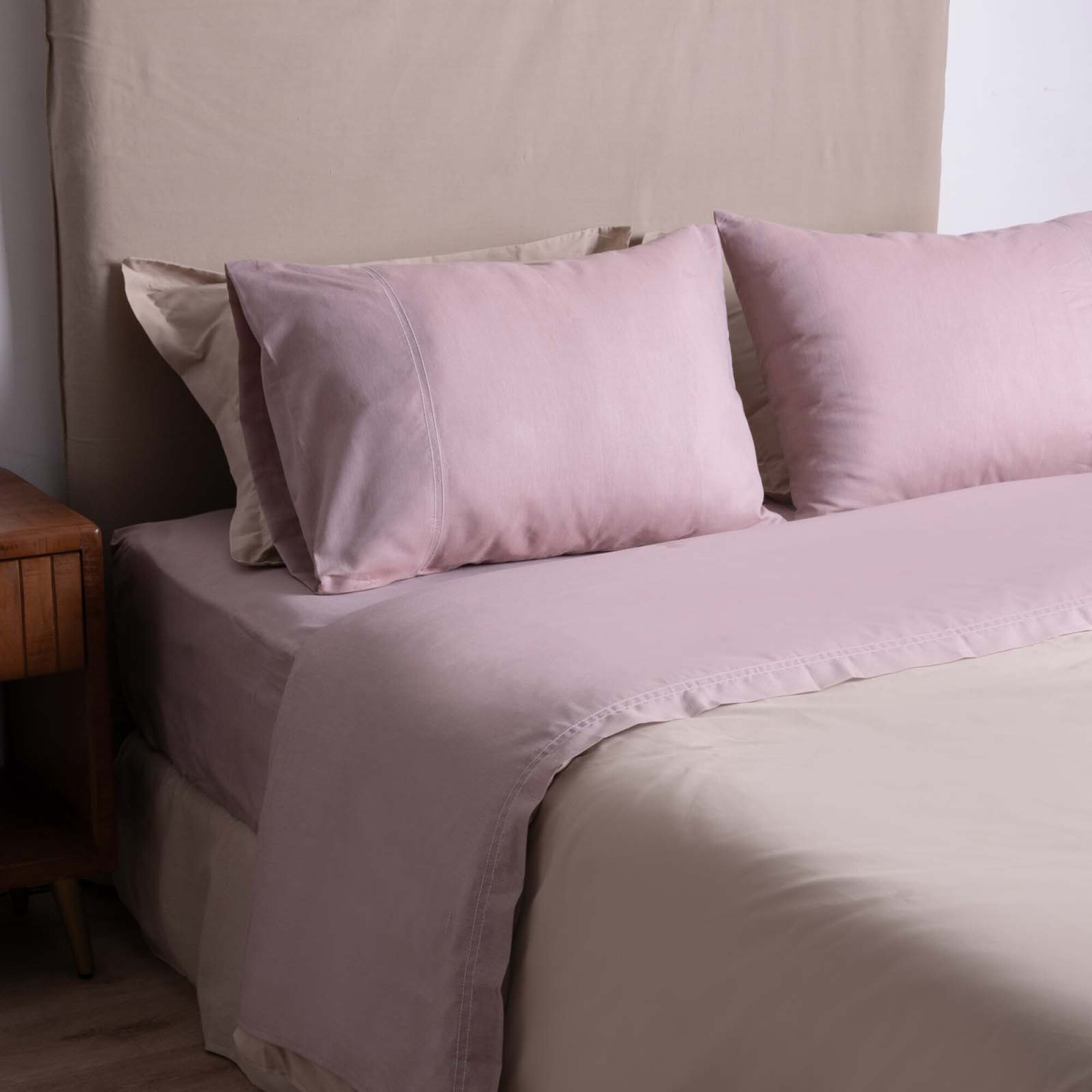 JGO. SÁBANAS - QUEEN ALGODON-Y-POLIESTER NATURAL-BEIGE CHAMBRAY CRUDO