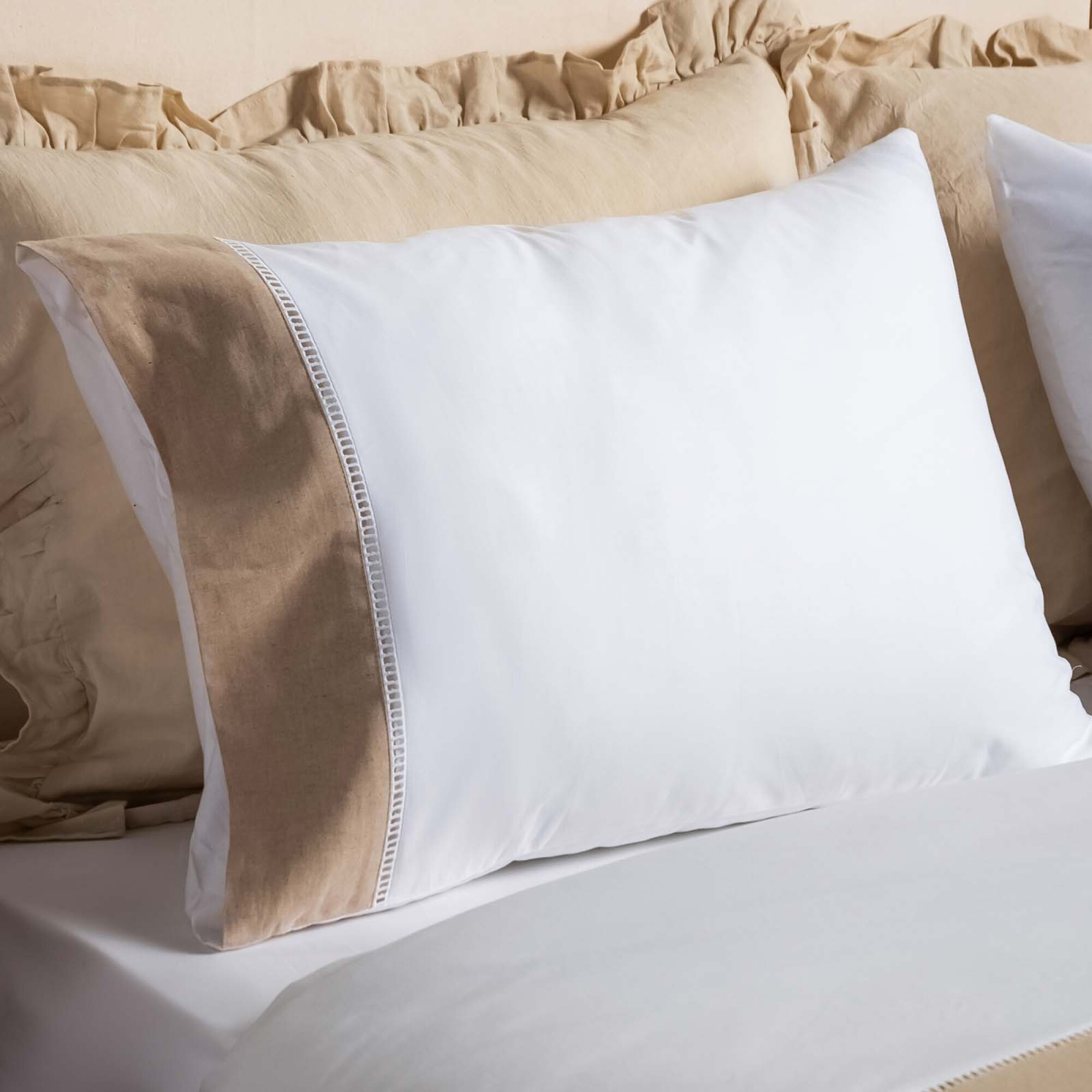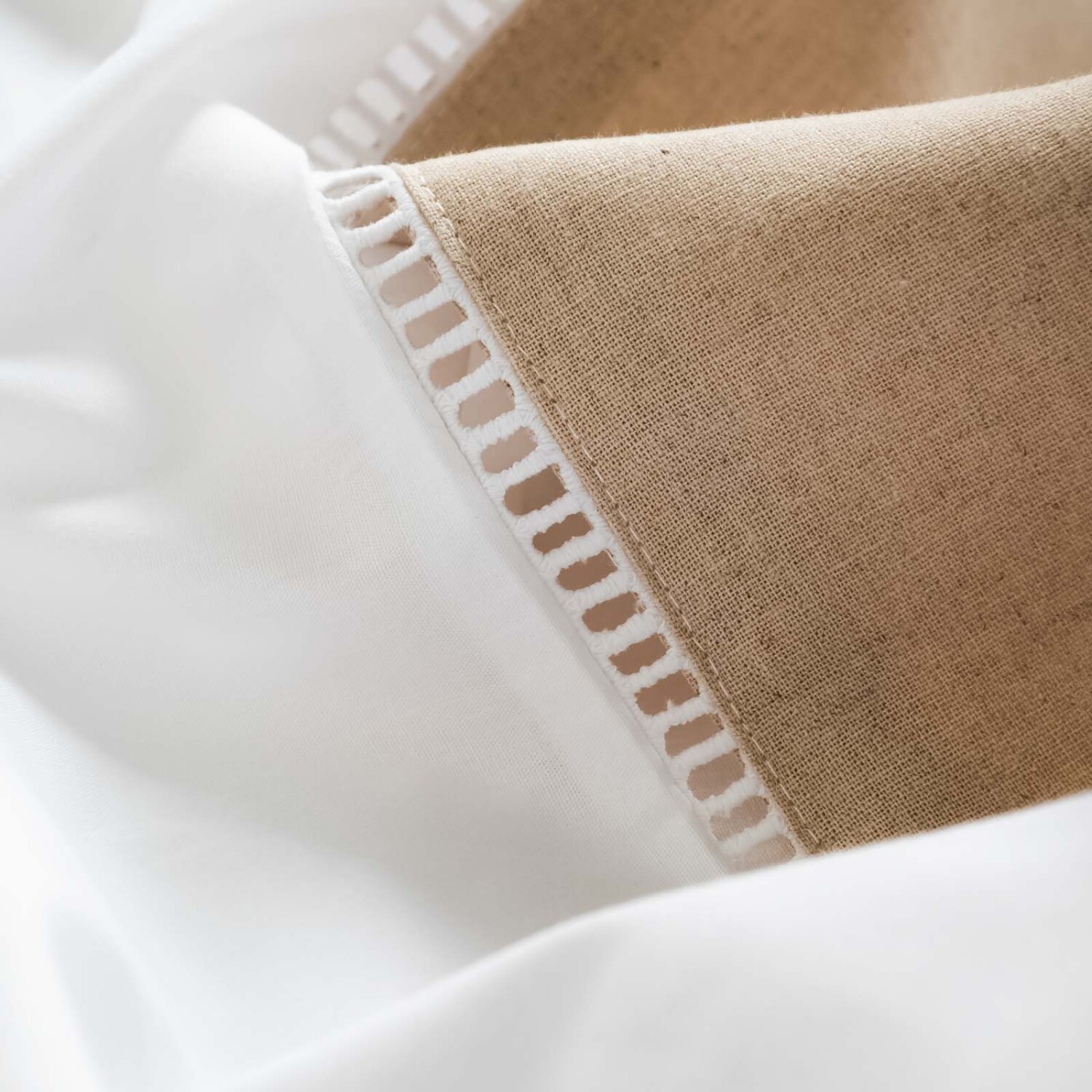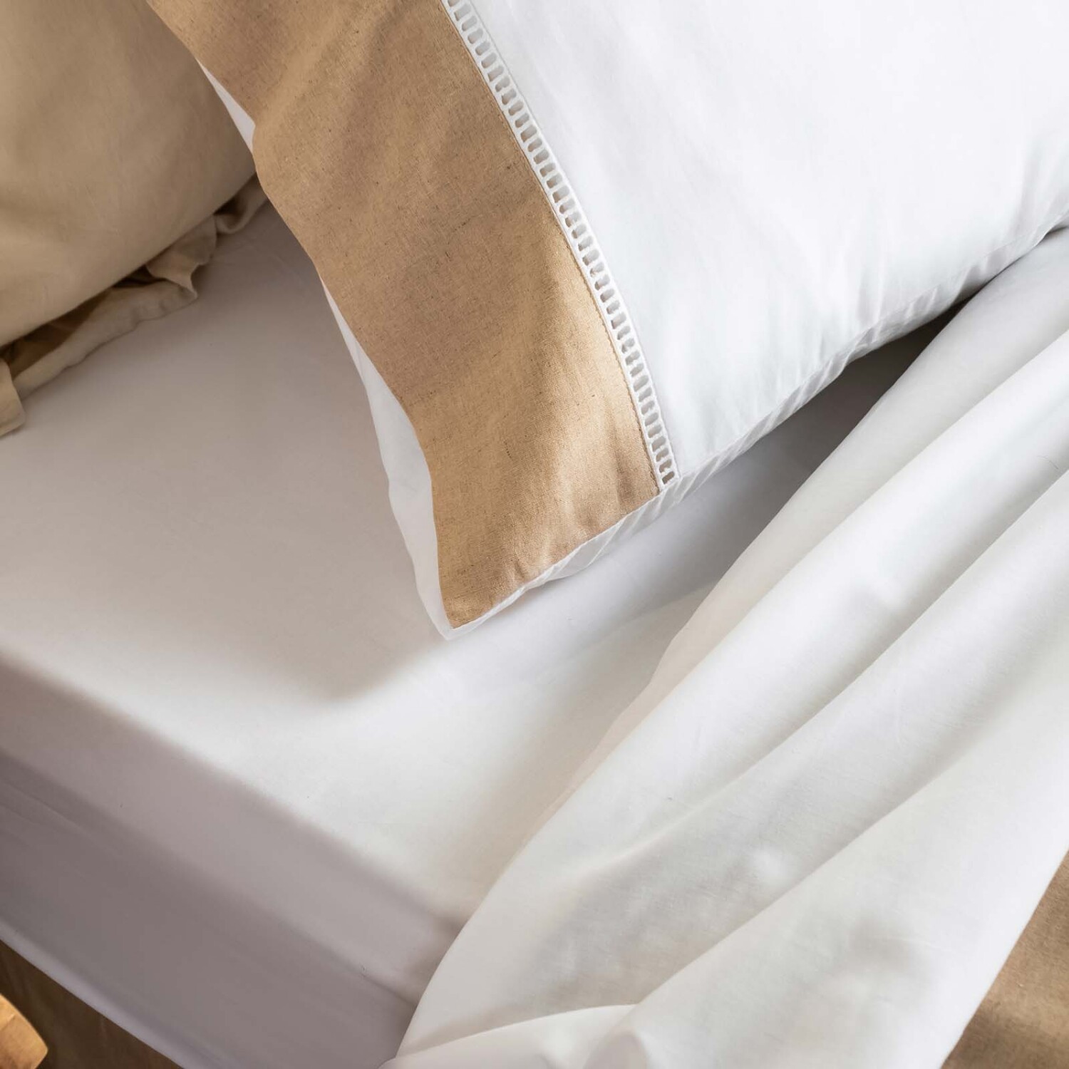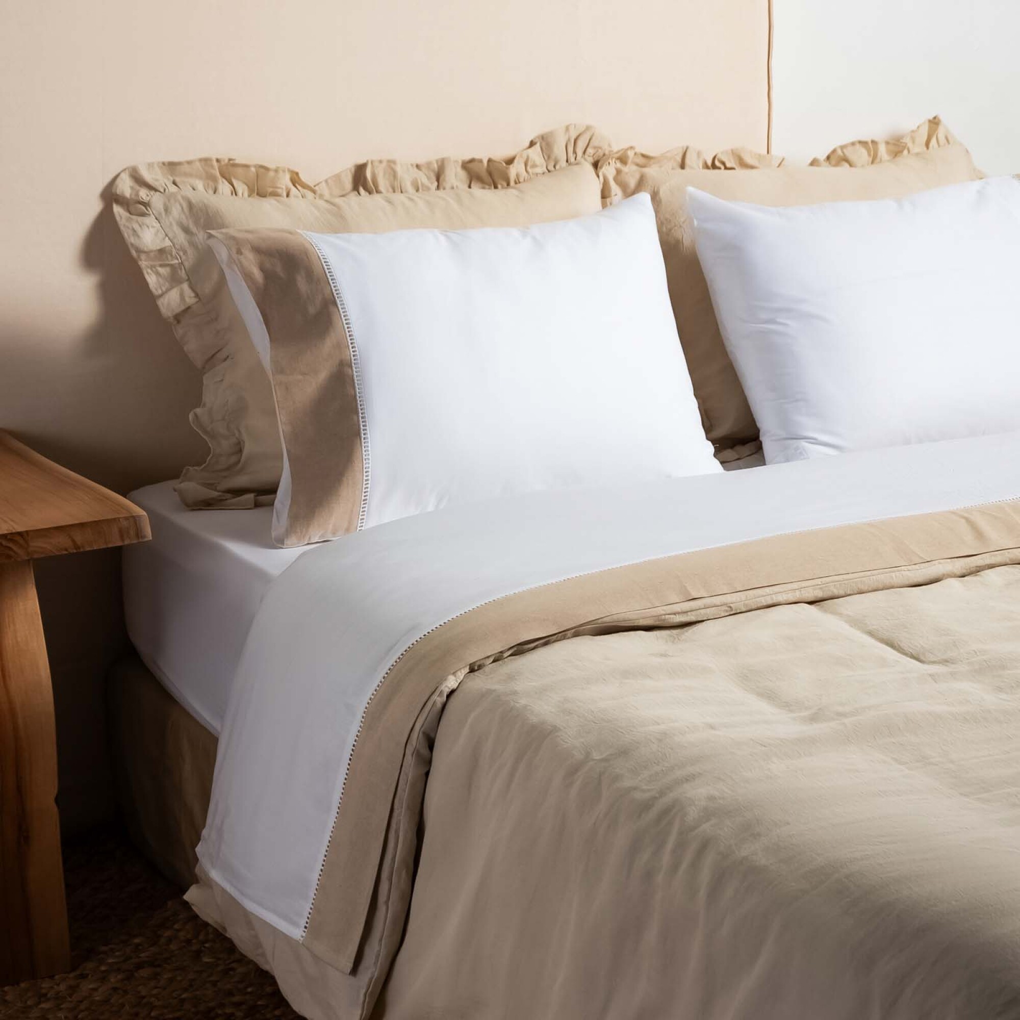 JUEGO DE SABANAS 180 HILOS - KING ALGODON NATURAL-BEIGE GUARDA DE LINO BEIGE