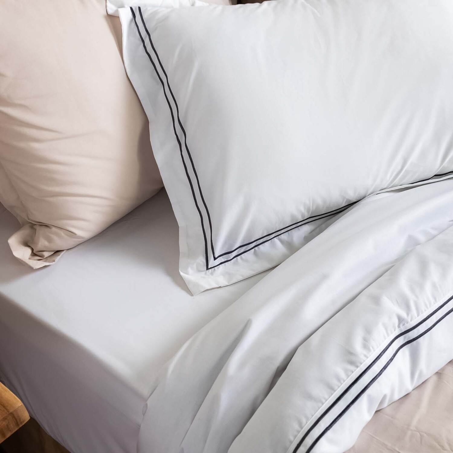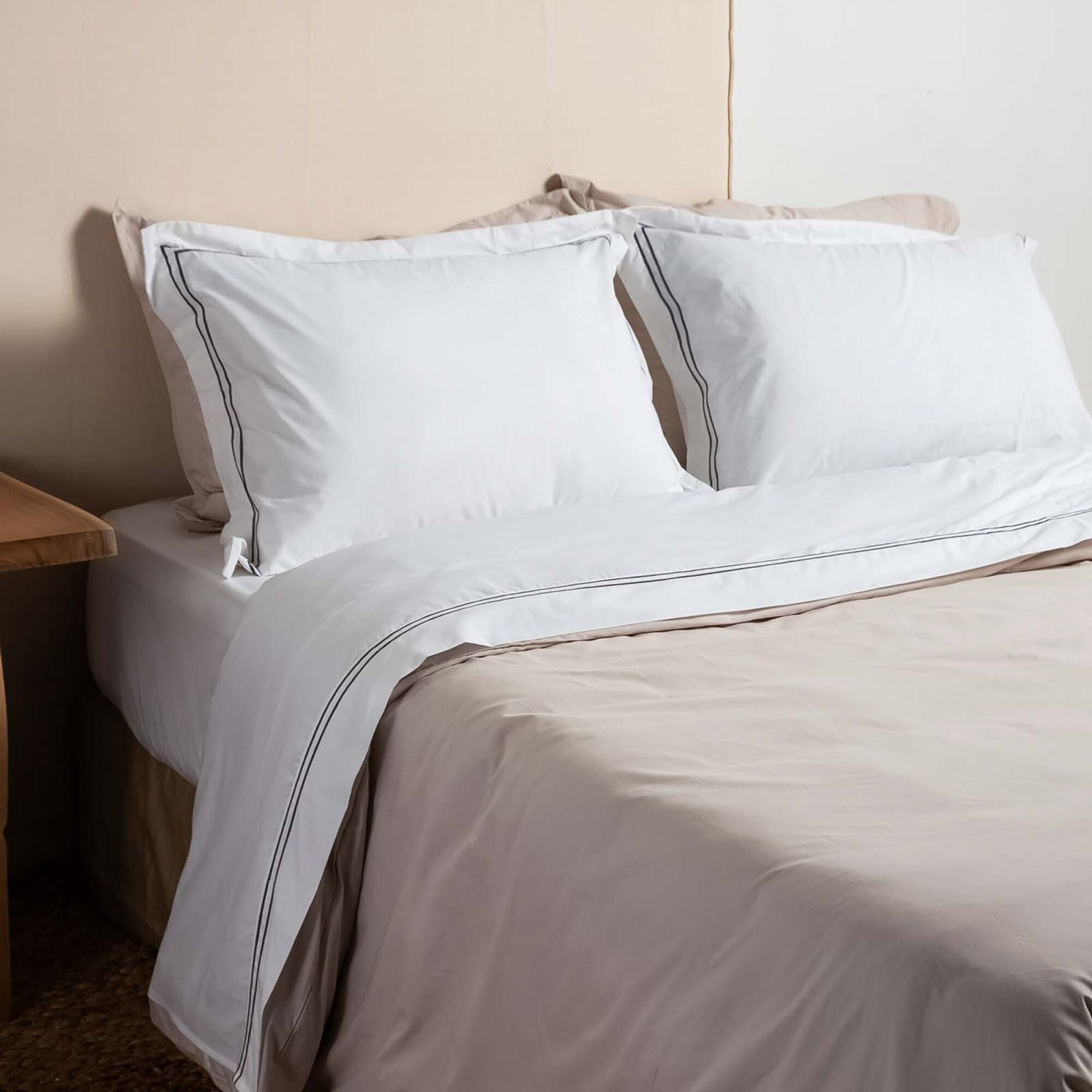 JUEGO DE SÁBANAS DOBLE FESTÓN - KING ALGODON BLANCO 200H