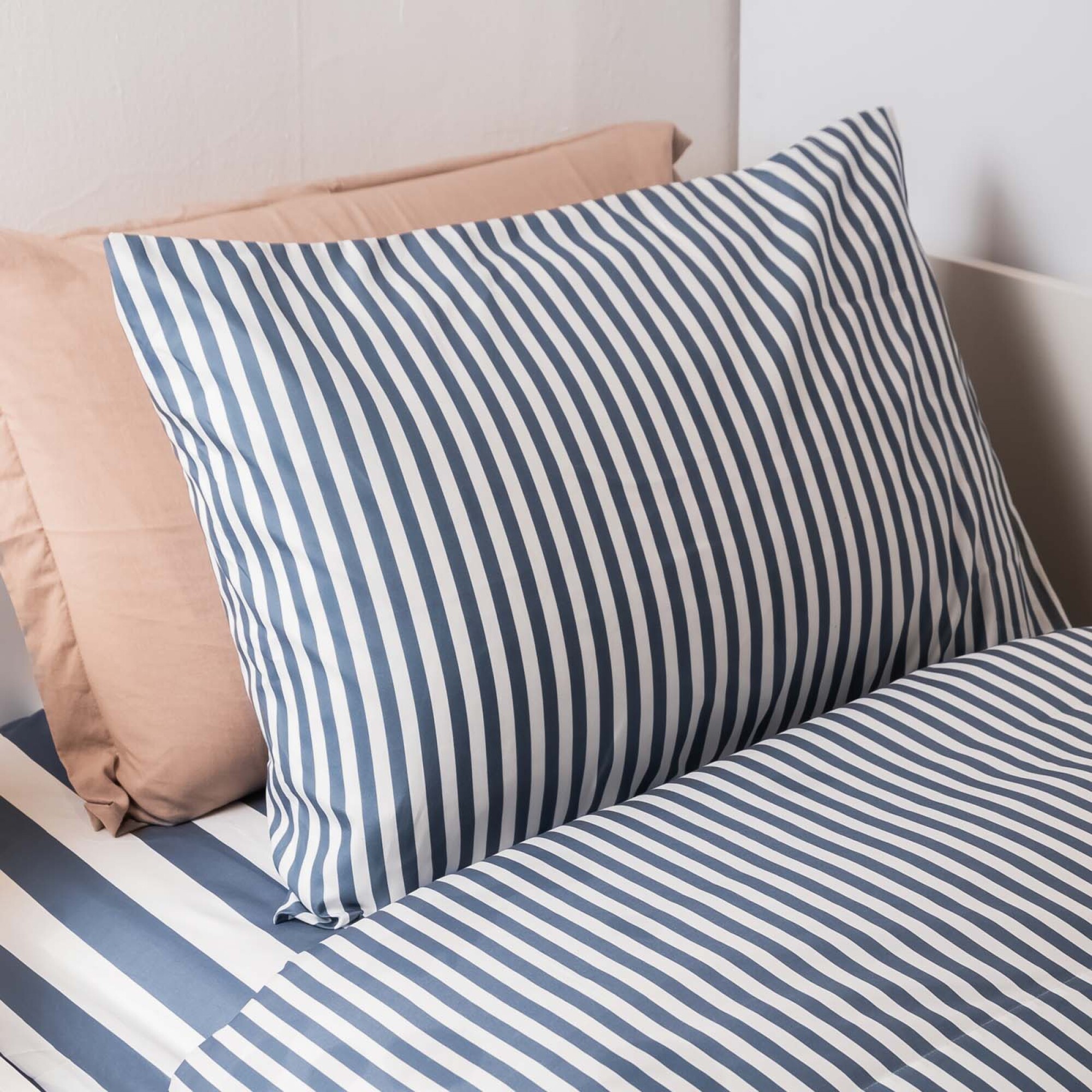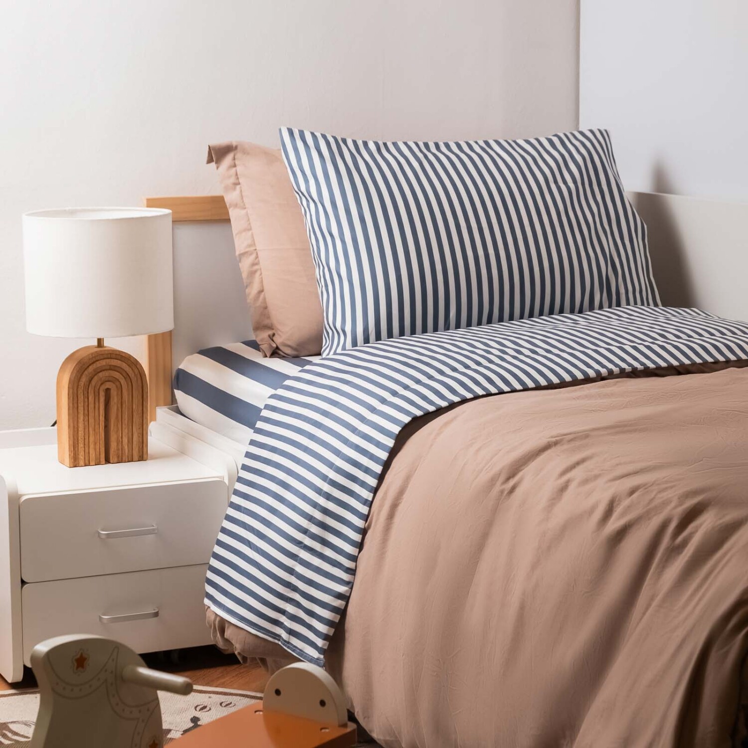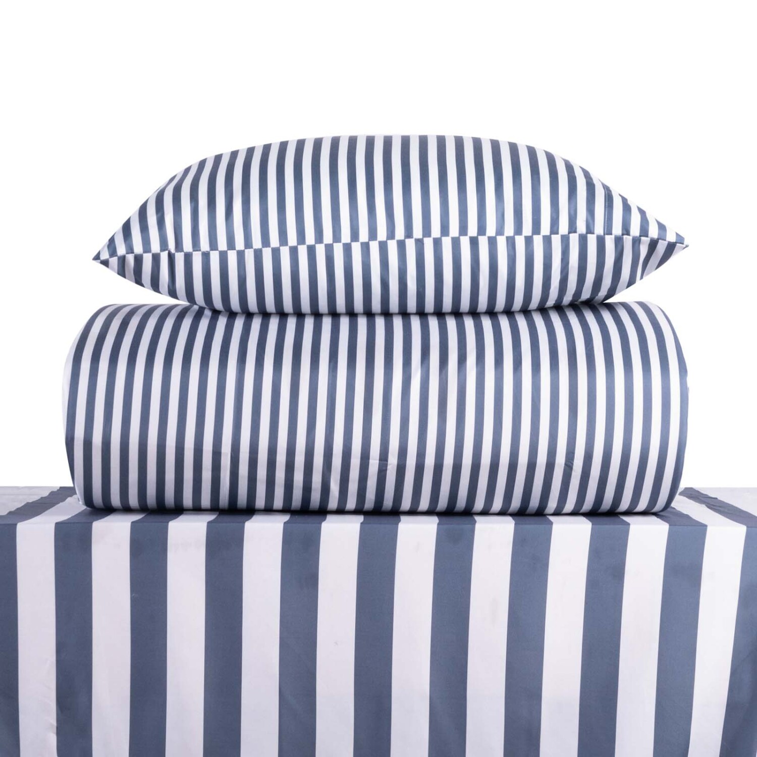 JUEGO DE SÁBANAS - FIBRA-SUAVE AZUL RAYAS AZUL Y BLANCO