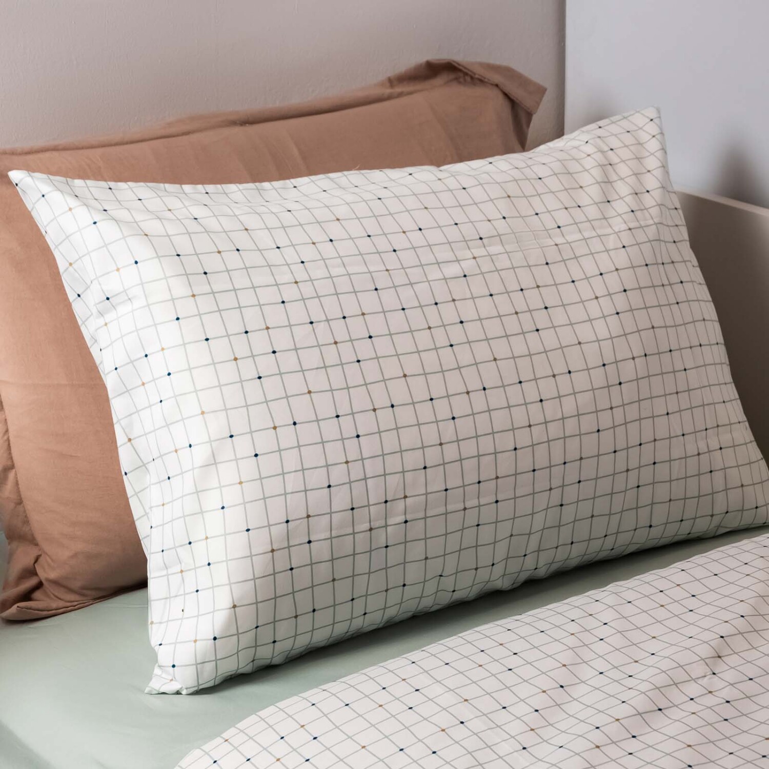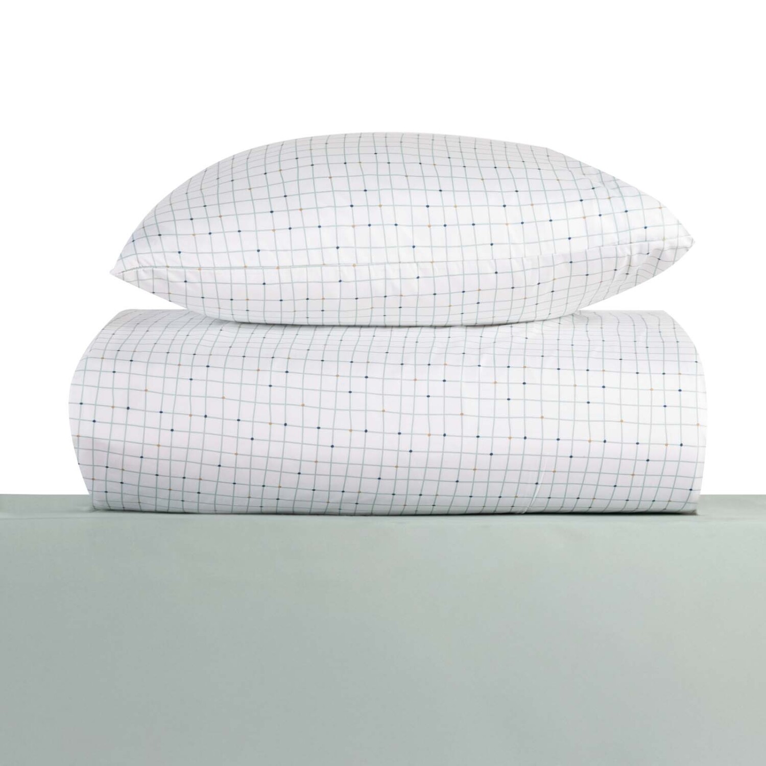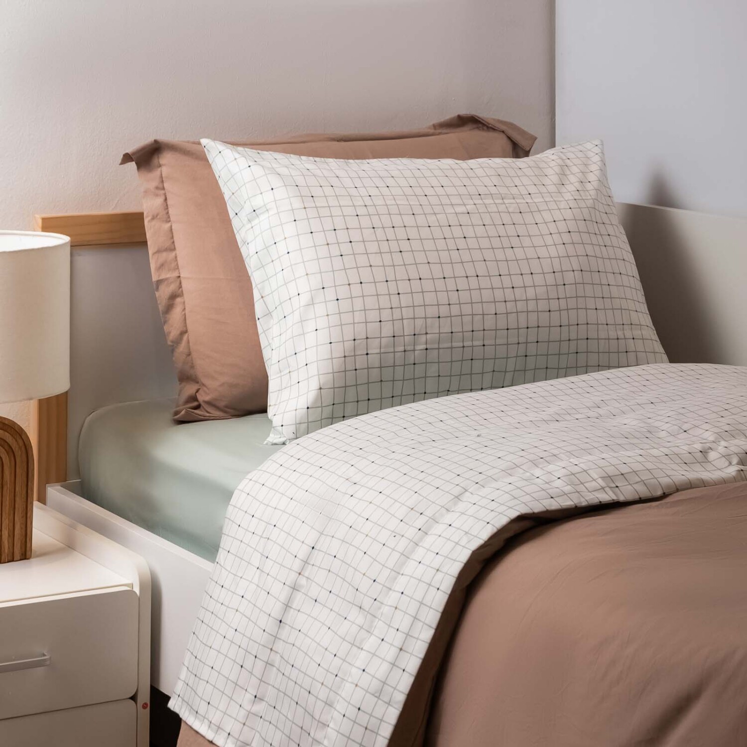 JUEGO DE SÁBANAS - FIBRA-SUAVE NATURAL-BEIGE CUADROS BEIGE VERDE