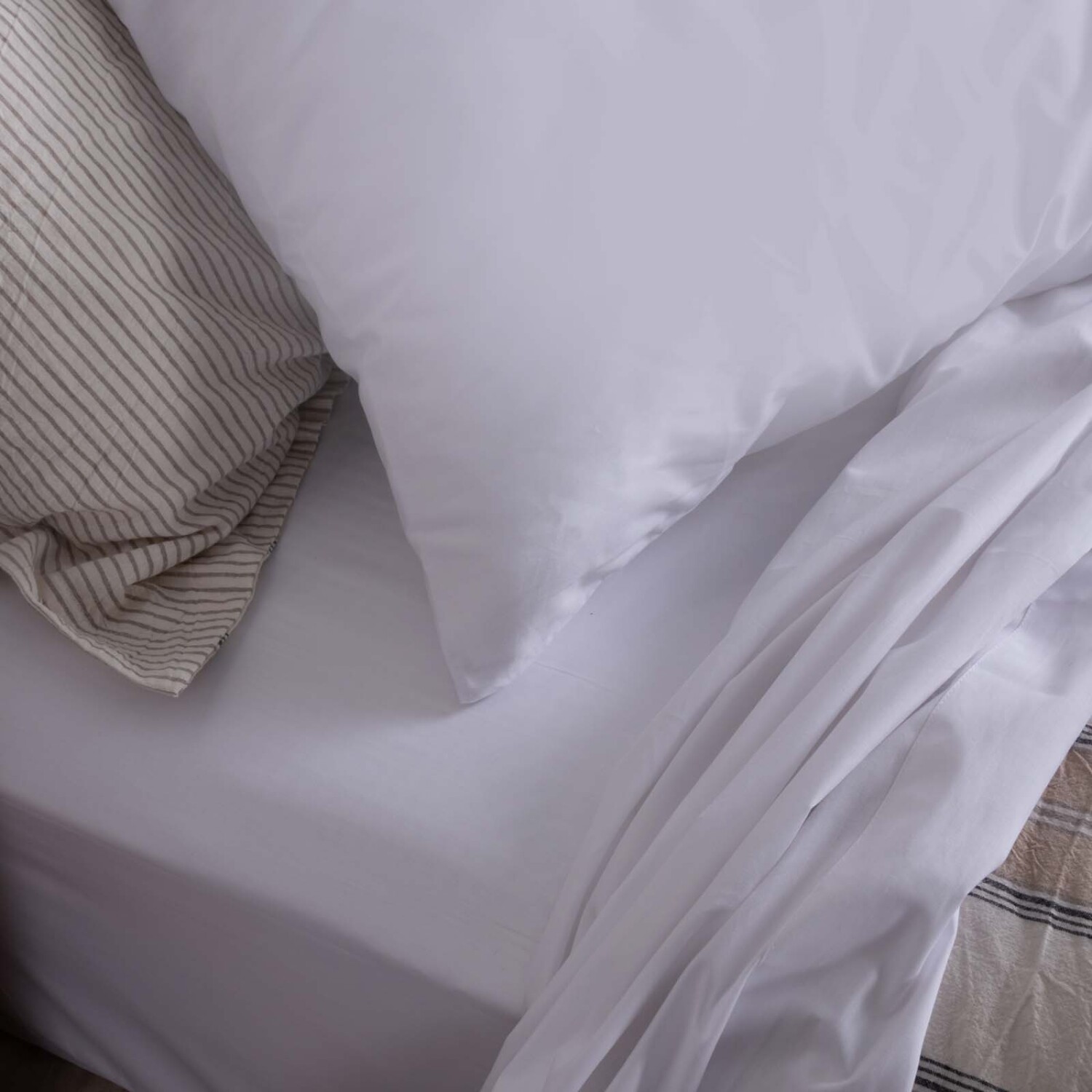 JUEGO DE SÁBANAS - QUEEN ALGODON BLANCO COTTON BASIC 180 HILOS