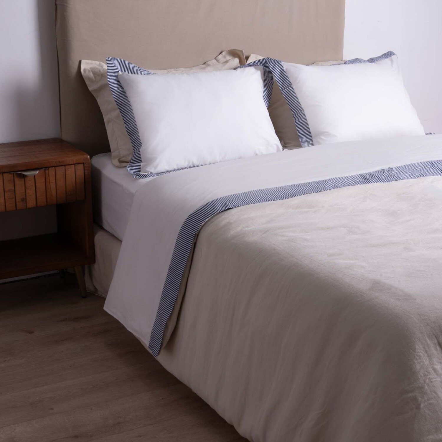JUEGO DE SABANAS - SUPER KING ALGODON AZUL STRIPE 200H MARINO