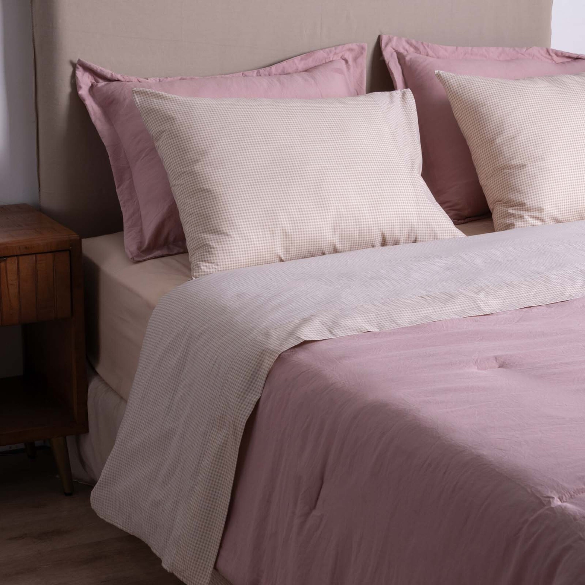 JUEGO SÁBANAS - SUPER KING ALGODON-Y-POLIESTER NATURAL-BEIGE VICHY AVENA