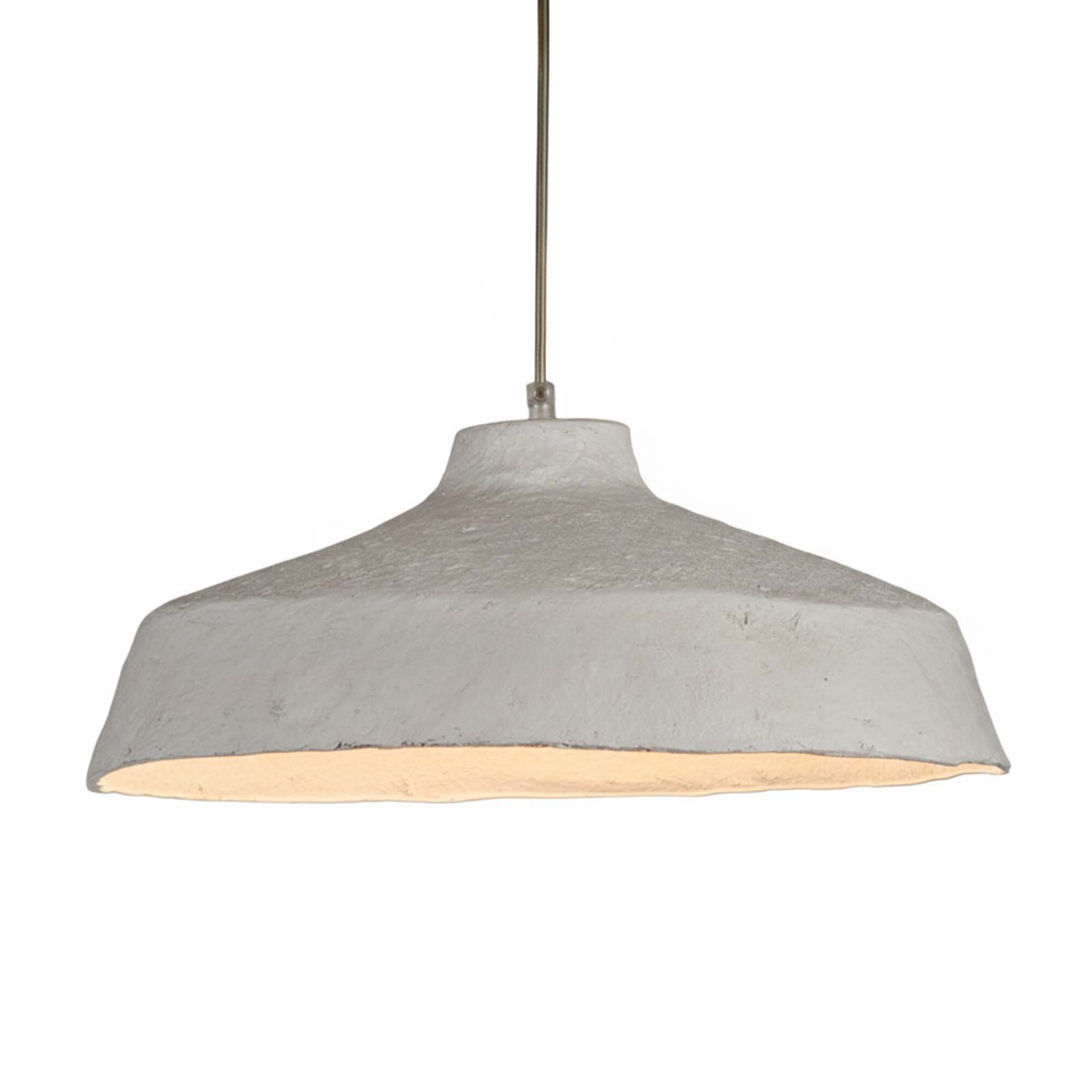 Pantalla colgante de 44 cm de diámetro, realizada en papel maché con acabado en color blanco. Un diseño artesanal que aporta calidez, naturalidad y un toque distintivo a la decoración.