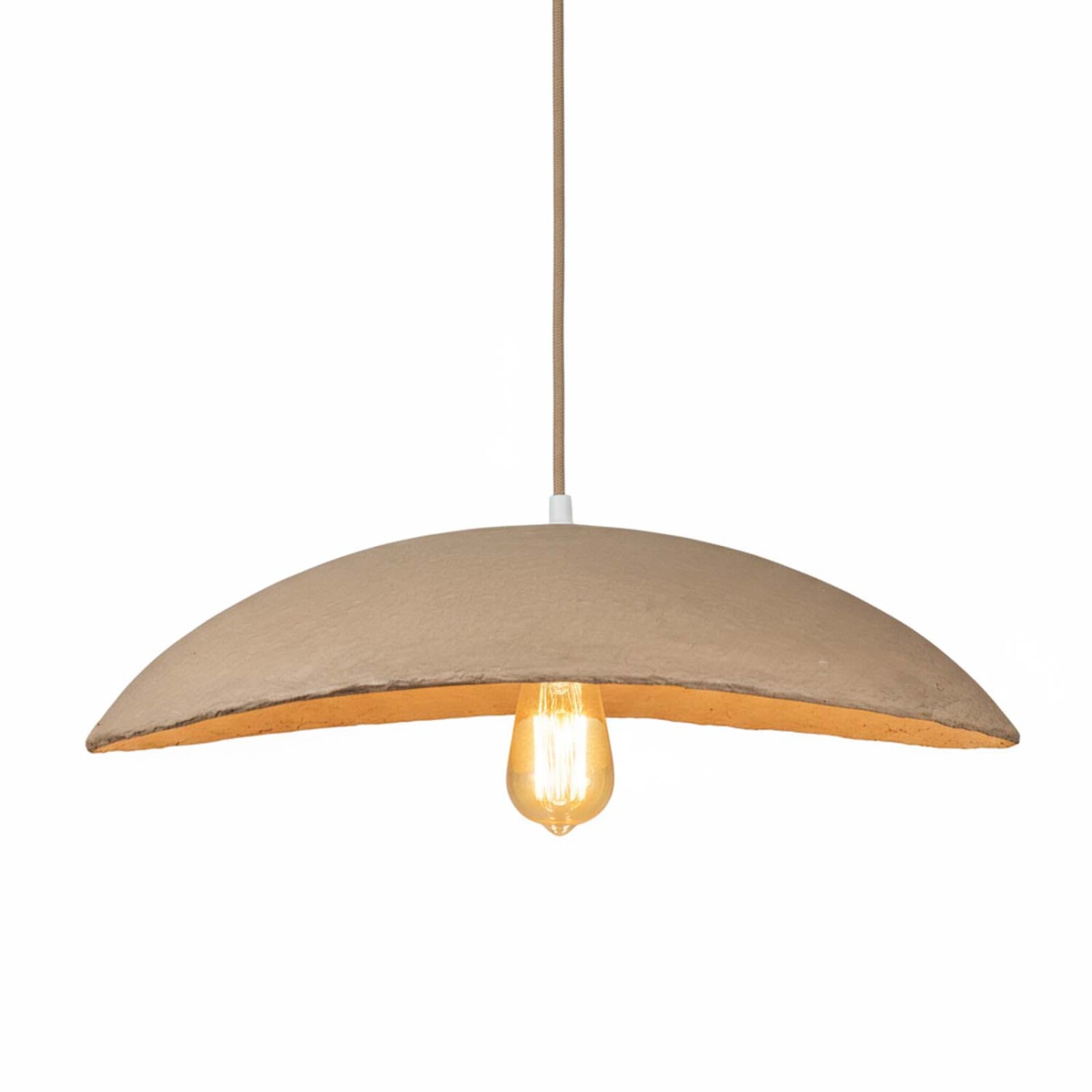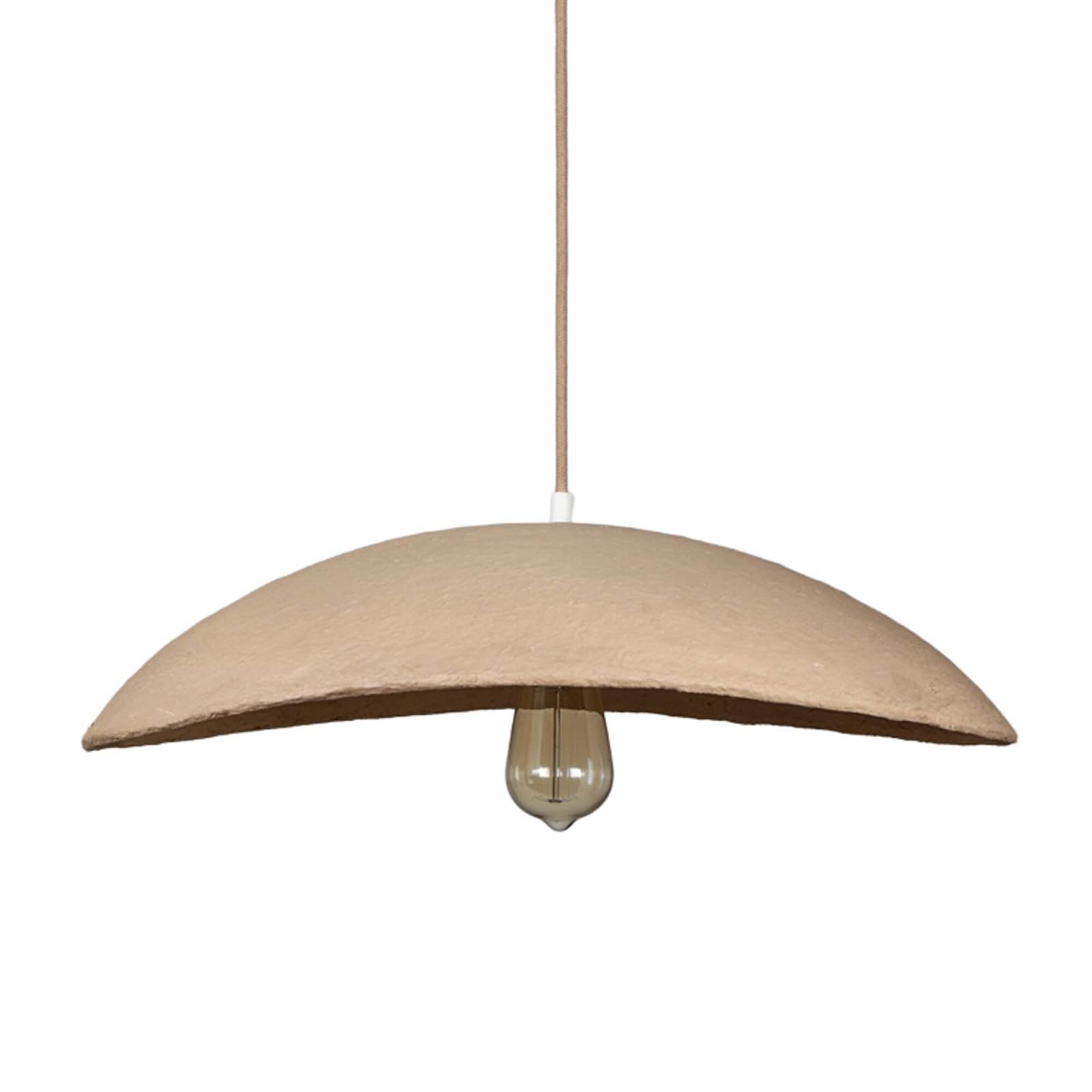 Pantalla colgante elaborada en papel maché con acabado en color taupe. Una pieza artesanal que aporta calidez, elegancia y un toque natural a cualquier ambiente.
