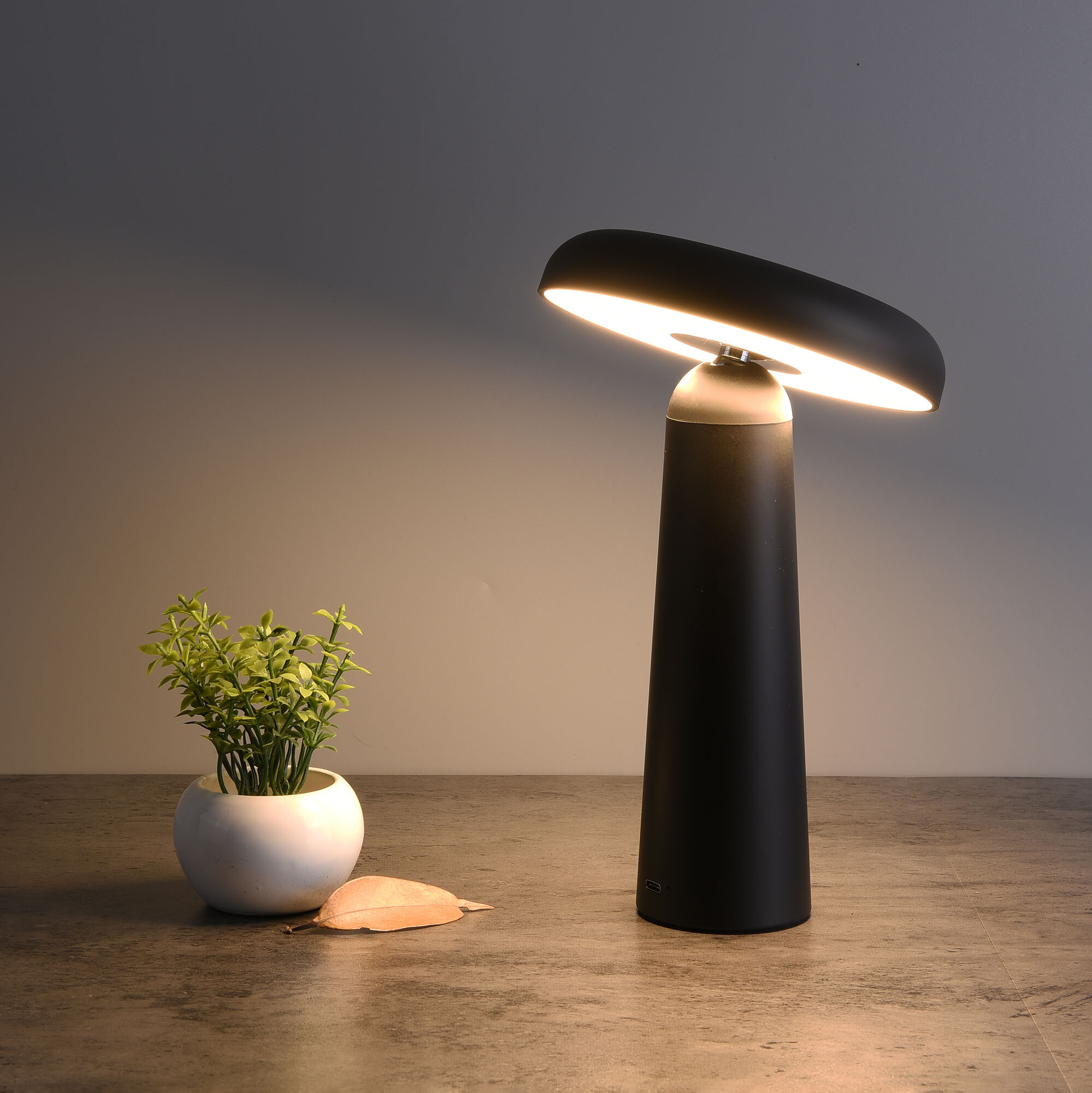 Lámpara portátil recargable. Tarda 4 horas en cargarse por completo y se puede usar durante 6 horas cuando está completamente cargado. El interruptor en la parte inferior de la lámpara es el interruptor principal, cuando está encendido, podemos tocar la parte superior de la pantalla para encender y apagar la luz. Al mismo tiempo, podemos colocar nuestros dedos suavemente en la parte superior central de la pantalla durante 3 segundos para ajustar el brillo de la luz.