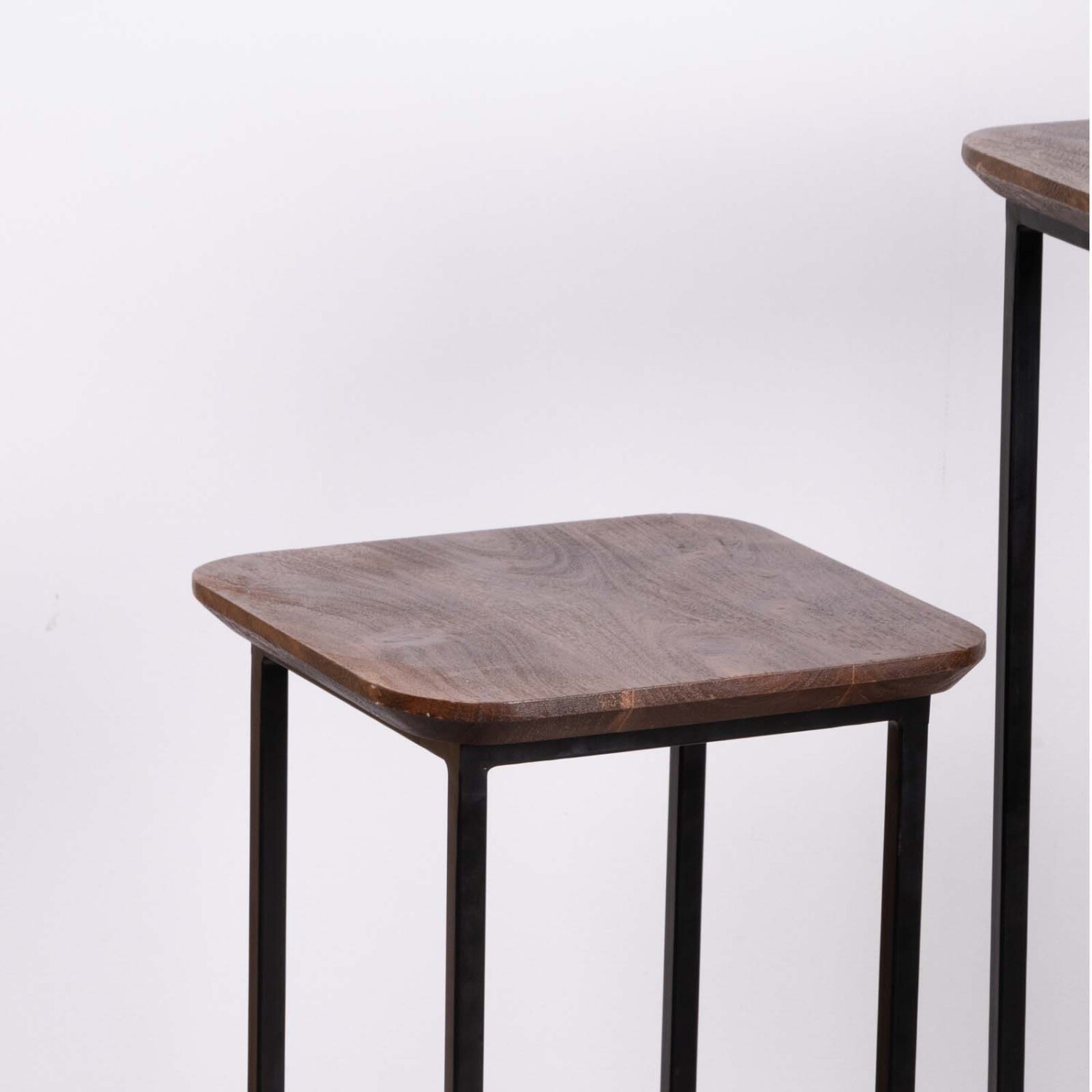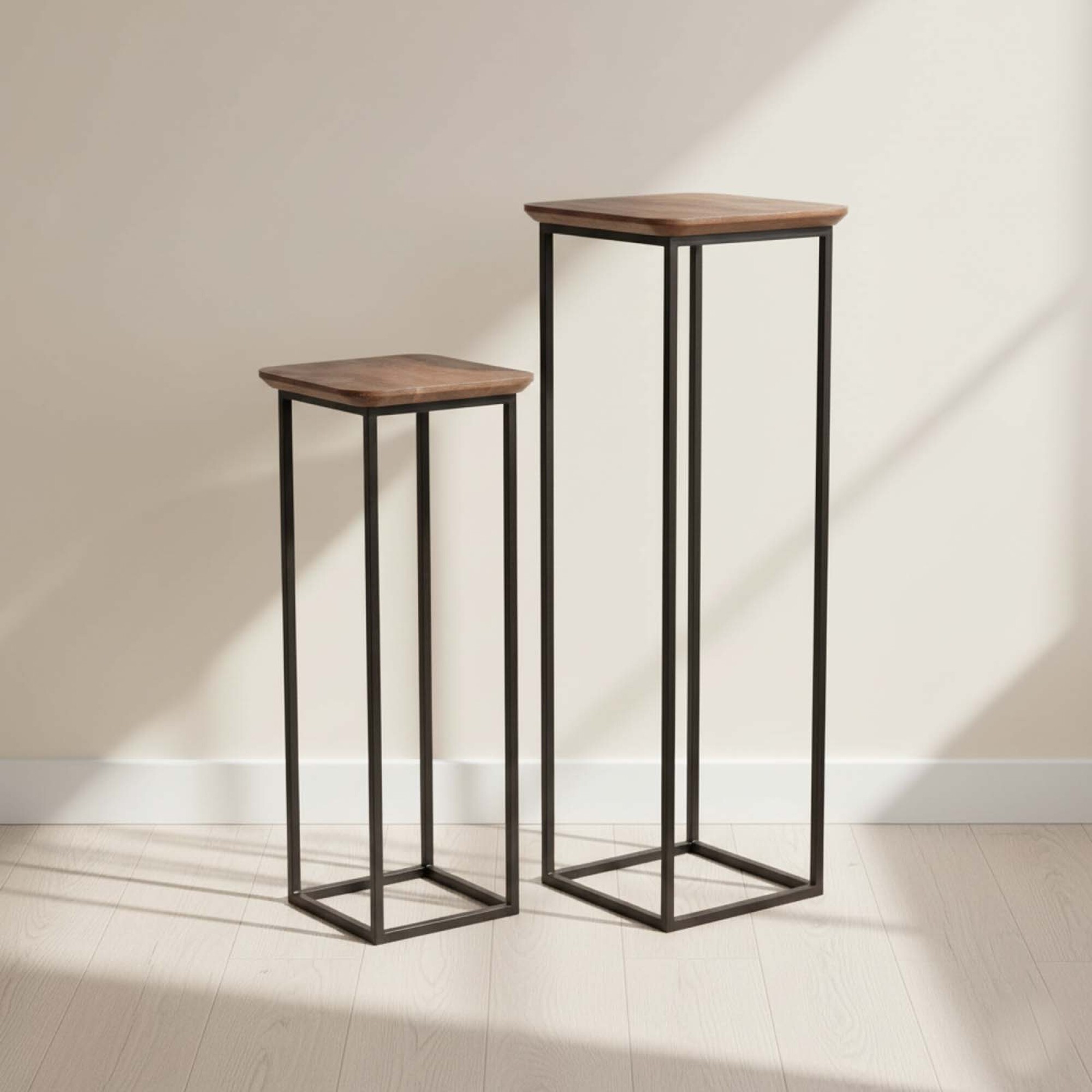 La mesa auxiliar madera y metal marrón Eclipse castaño es un set de mesas laterales ideal como mesa de arrime, mesa lateral o mesa auxiliar, en elegante color castaño que se integra fácilmente a distintos ambientes. Fabricadas en madera de acacia de 26 mm y hierro, ofrecen una estructura firme y estética, combinando material detallado en madera y metal para un estilo actual. La mesa mayor mide 35 x 35 x 100 cm y la mesa menor 30 x 30 x 80 cm, proporcionando superficies funcionales para apoyar objetos decorativos, libros o accesorios junto al sillón, sofá o entrada.