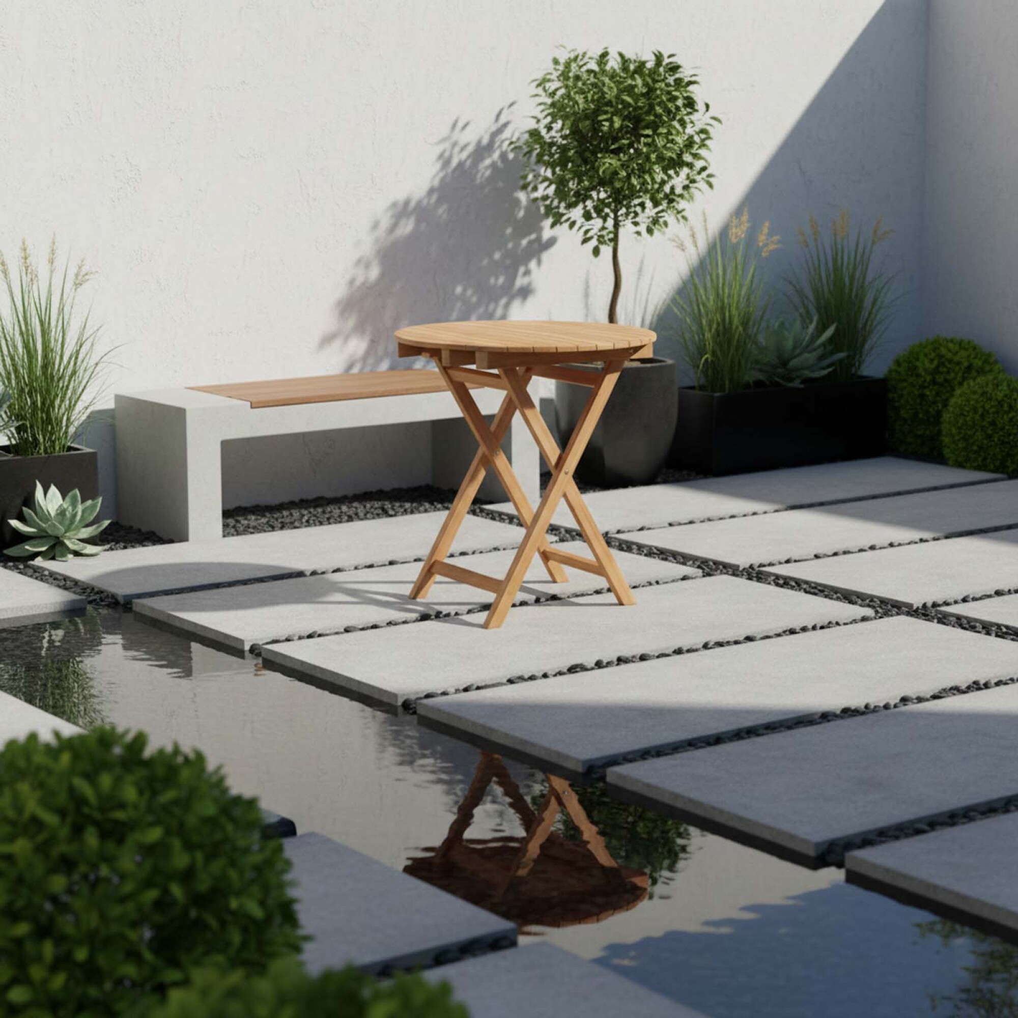 Mesa circular PALMA, fabricada en madera de teca. Con un práctico diseño plegable y 70 cm de diámetro, es perfecta para optimizar espacios y complementar tu terraza o jardín con estilo y funcionalidad. Cuidados y limpieza: Retirar el polvo y la suciedad con un cepillo suave o un paño seco. Para eliminar manchas leves, utilizar un paño húmedo con agua tibia y jabón neutro y secar completamente. No utilizar productos abrasivos que puedan perjudicar la superficie del material y su durabilidad. Se recomienda aplicar aceite de teca o un protector de madera para preservar el color y brillo natural, ajustando la frecuencia (anual o semestral) según el uso. En condiciones de clima adverso, almacenar bajo techo.