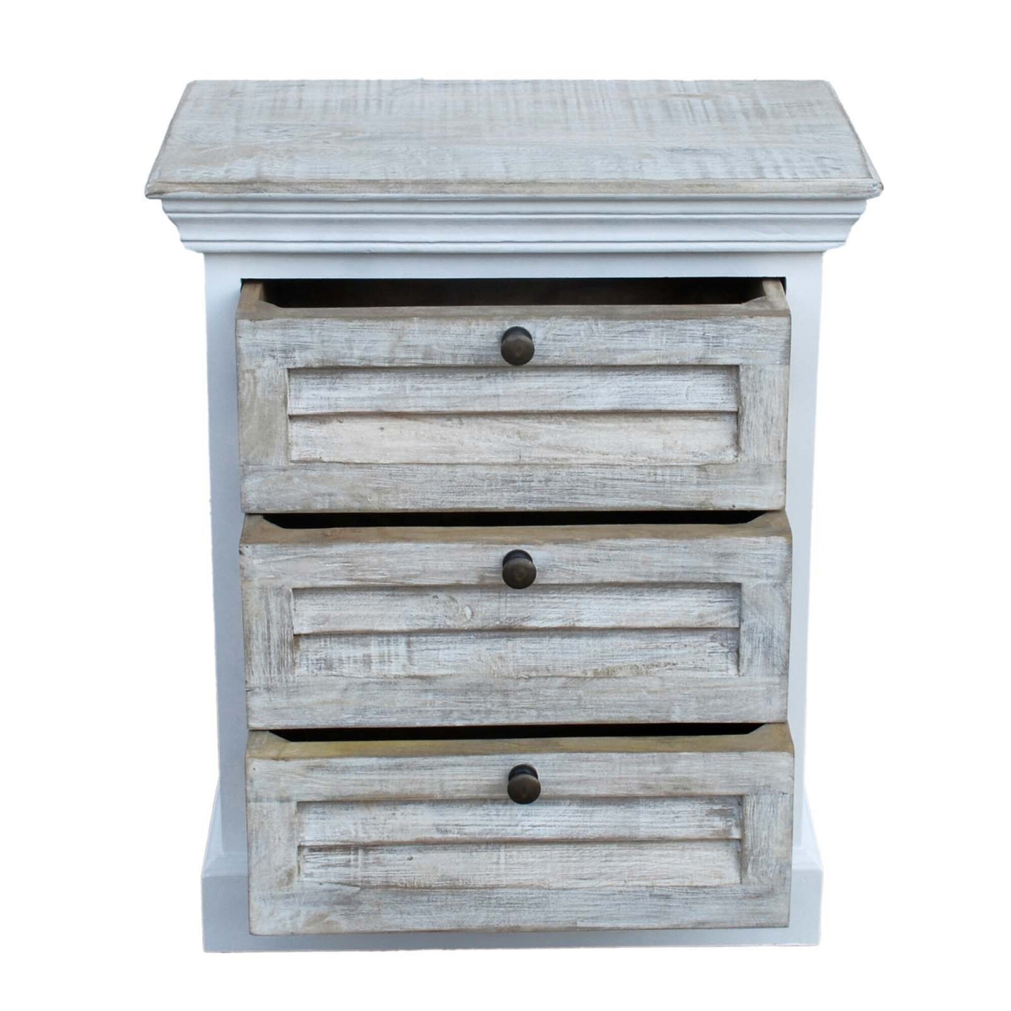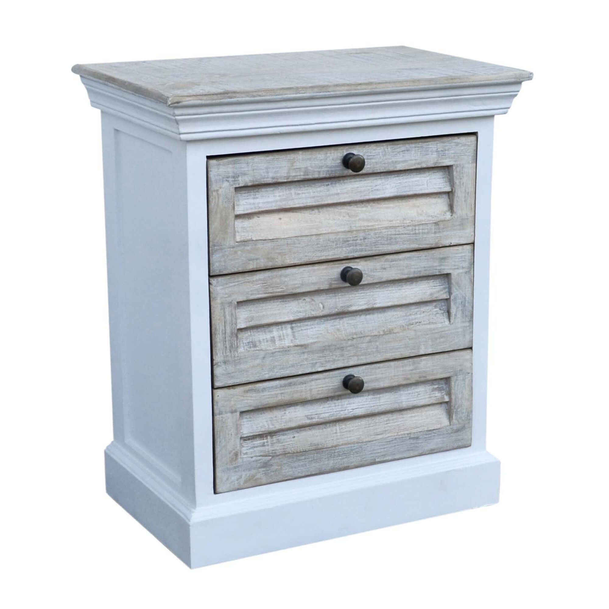 De líneas clásicas y estilo rústico, la mesa de luz EZIO 3C es una pieza funcional y decorativa, ideal para quienes buscan más espacio de guardado. Fabricada en madera de mango, presenta una resistente estructura blanca combinada con frentes y tapas en madera clara, destacadas por un elegante diseño ripado. Con tres amplios cajones, esta mesa de luz ofrece gran capacidad de almacenamiento en un formato de dimensiones generosas, perfecta para dormitorios de mayor tamaño. Soporta hasta 20 kg, combinando durabilidad con un diseño cálido y atemporal.