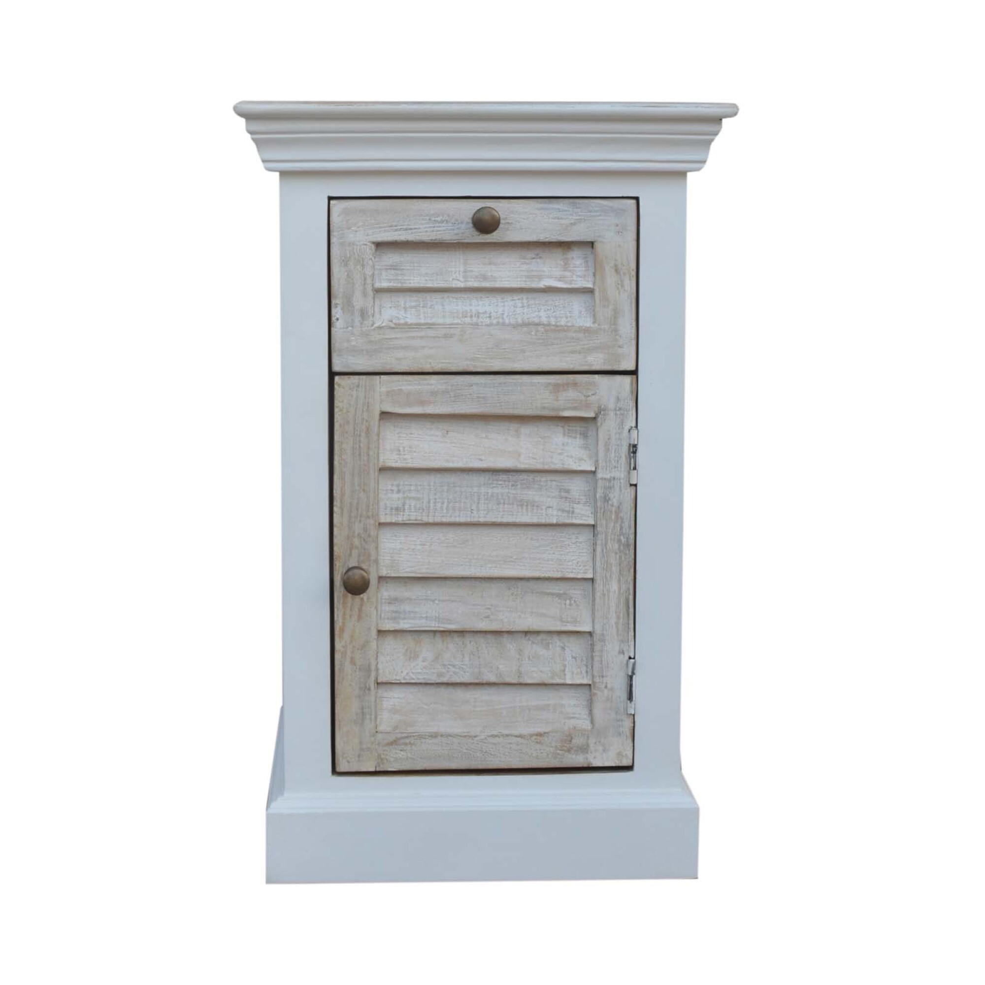 La mesa de luz EZIO 1C/1P es la opción perfecta para espacios pequeños sin resignar estilo ni funcionalidad. Fabricada en madera de mango, combina una estructura blanca con tapas y frentes en madera clara y detalle ripado, aportando un encanto rústico y natural. Cuenta con un cajón y un estante con puerta, ofreciendo almacenamiento práctico en un diseño compacto. Ideal para dormitorios con estética cálida, su sólida construcción permite una capacidad de carga de hasta 20 kg.