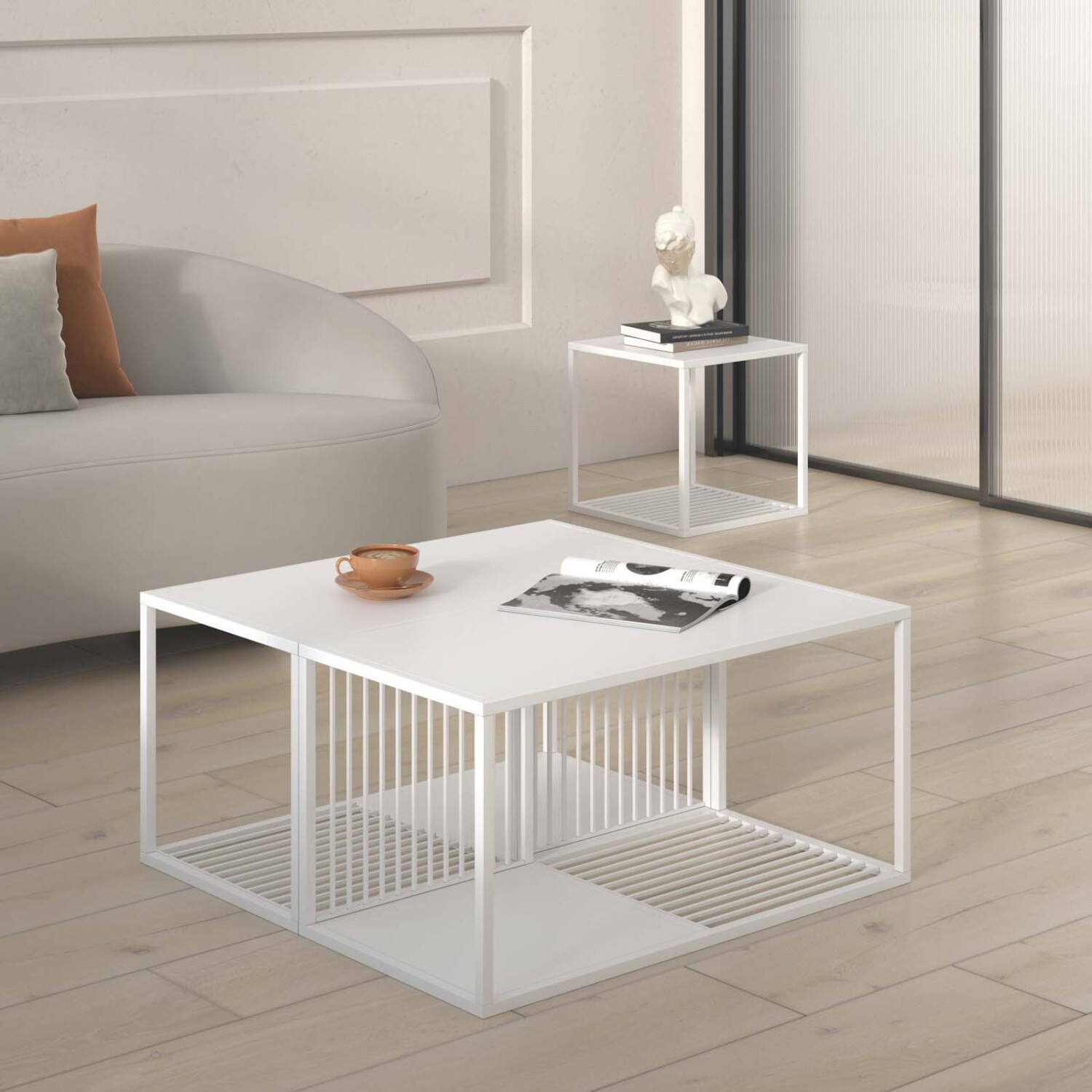 La mesa lateral metal blanco Olivia es una mesa de arrime, mesa lateral y mesa auxiliar versátil en color blanco, ideal para sumar superficie de apoyo sin recargar el espacio. Fabricada en metal con tubo de 15×15×1.0 mm y chapa de acero de 0.6 mm de espesor, ofrece una estructura sólida y estable que soporta hasta 15 kg, perfecta para colocar lámparas, libros o adornos junto al sillón, la cama o en un rincón del living, aportando un estilo limpio y contemporáneo.