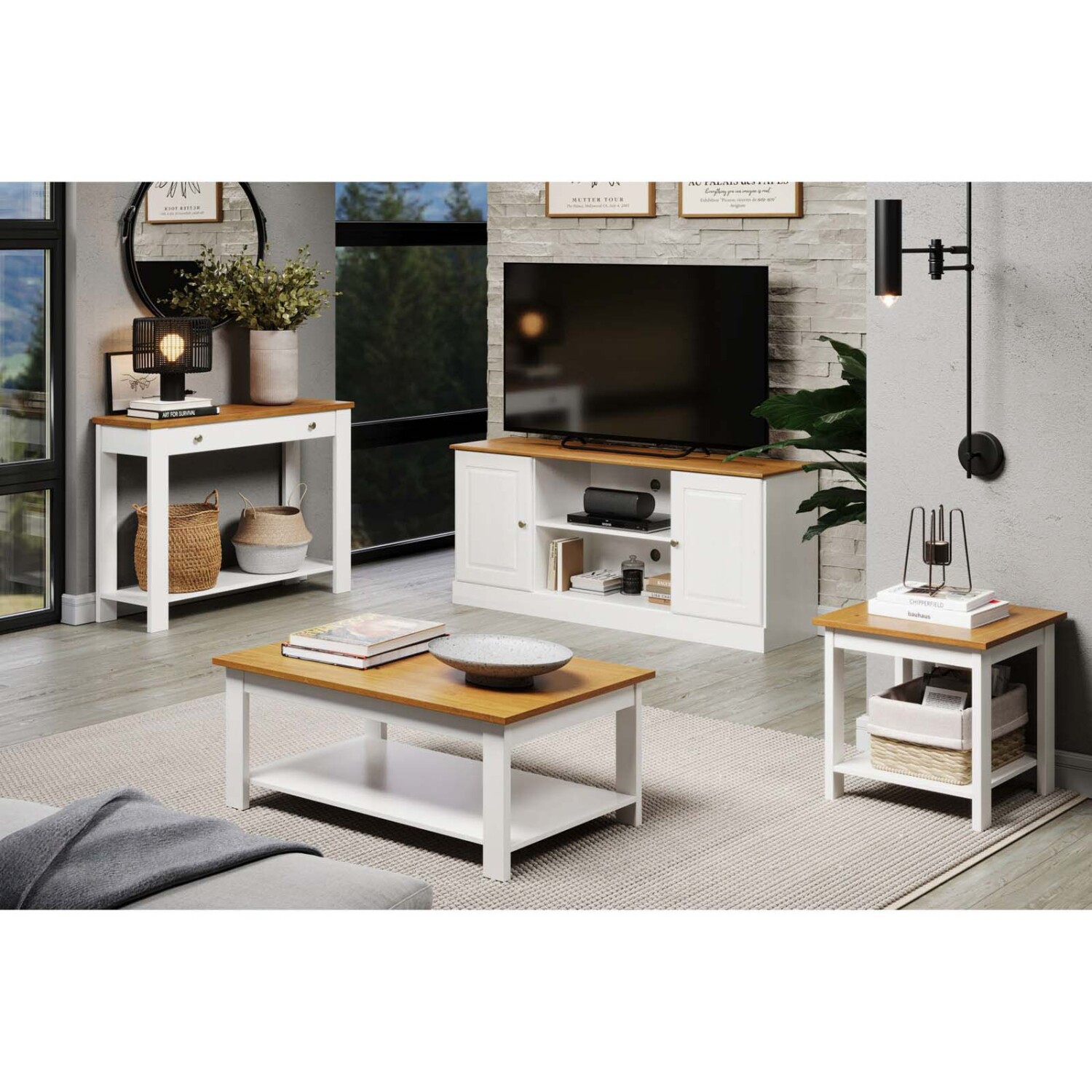 La mesa ratona central Madera Blanco Agata Bco/nat es una mesa de living en color blanco/natural que combina un diseño de estilo tradicional con funcionalidad diaria. Fabricada en madera de pino en madera, ofrece una superficie amplia y estable, ideal como mesa ratona o mesa auxiliar para organizar controles, libros y objetos decorativos. Incorpora un práctico estante inferior que maximiza el espacio de almacenamiento y mantiene el ambiente ordenado. Requiere armado, lo que permite un transporte más cómodo y una mejor adaptación a diferentes espacios del hogar.
