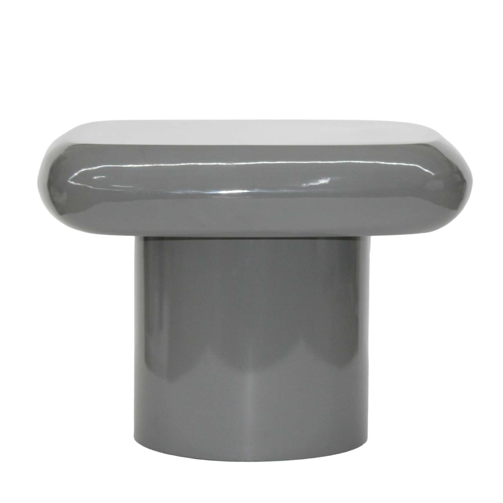 Mesa central/auxiliar en metal con acabado brillante.