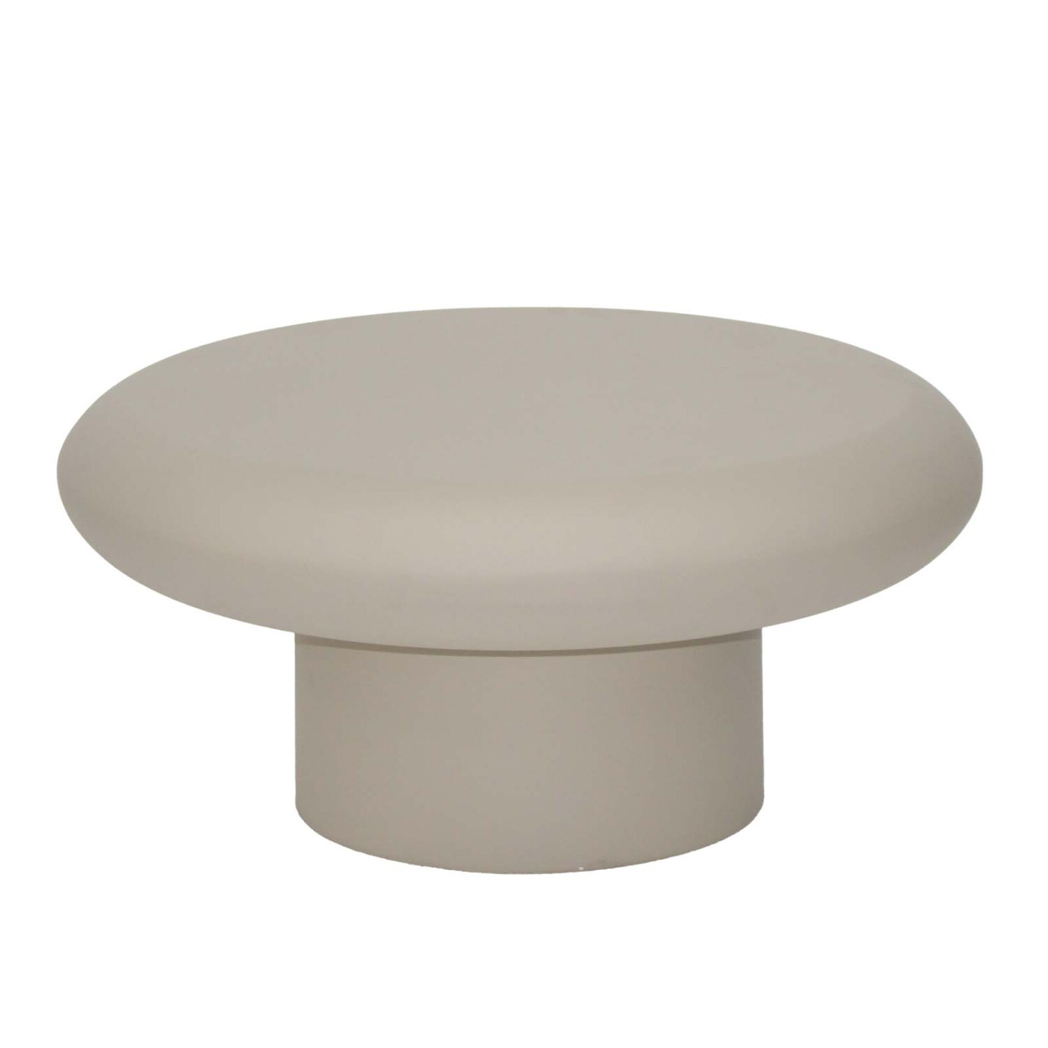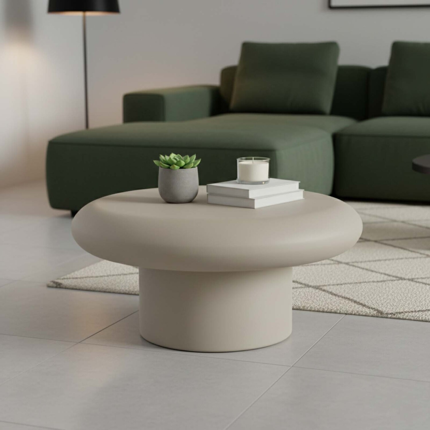 Mesa central fabricada en metal con un acabado aspecto cemento color mate.