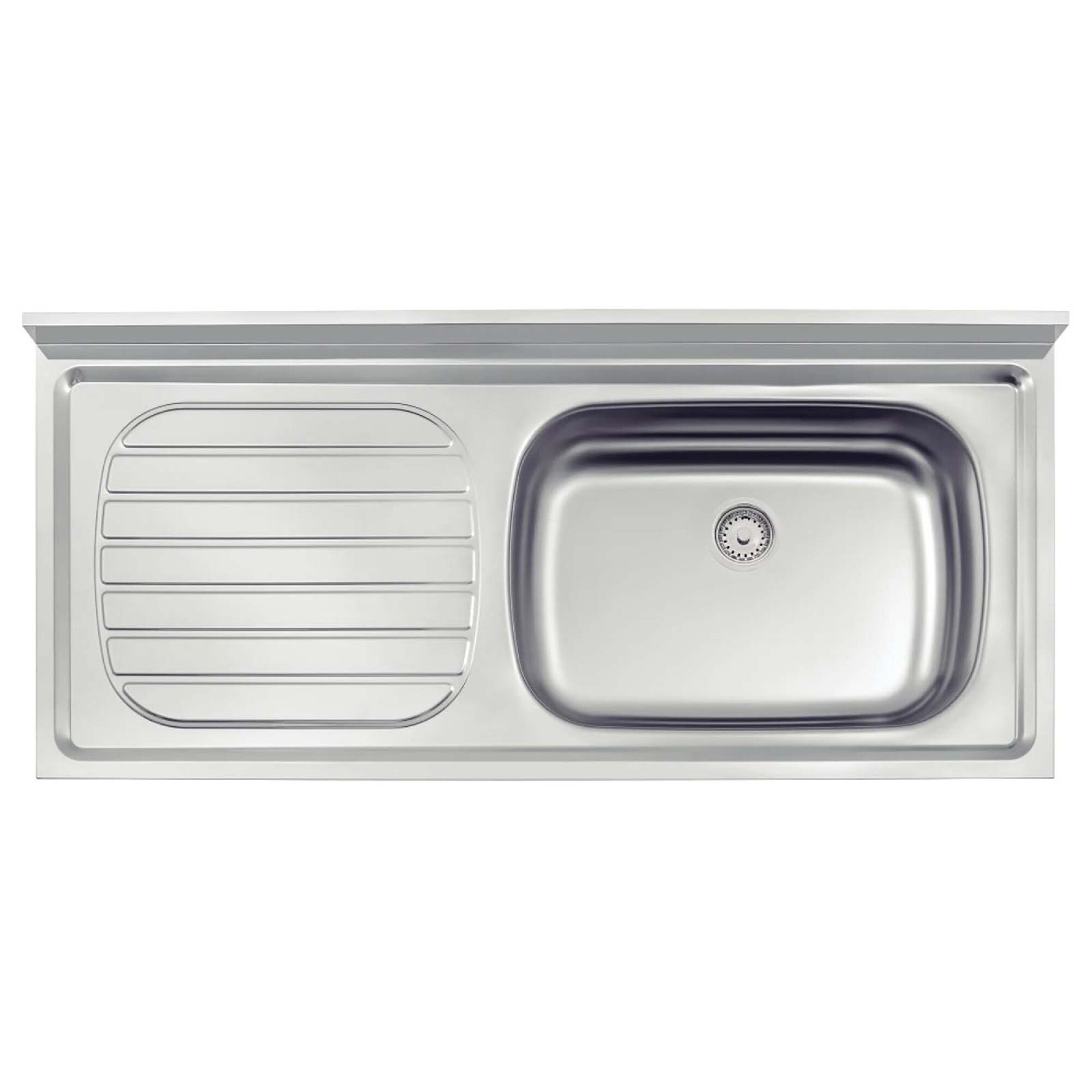 Mesada Tramontina c/pileta derecha. Incluye válvula. 120 x 55 cm, medida pileta 39 x 54 cm. / Acero 430 / Satinada._Compatible con línea de cocina: Americana Boston
