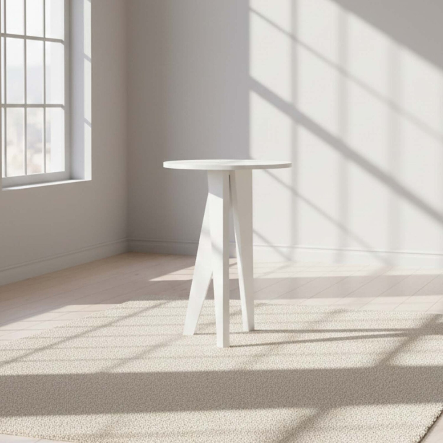 Mesa de apoyo fabricada en MDF con tres patas en madera.