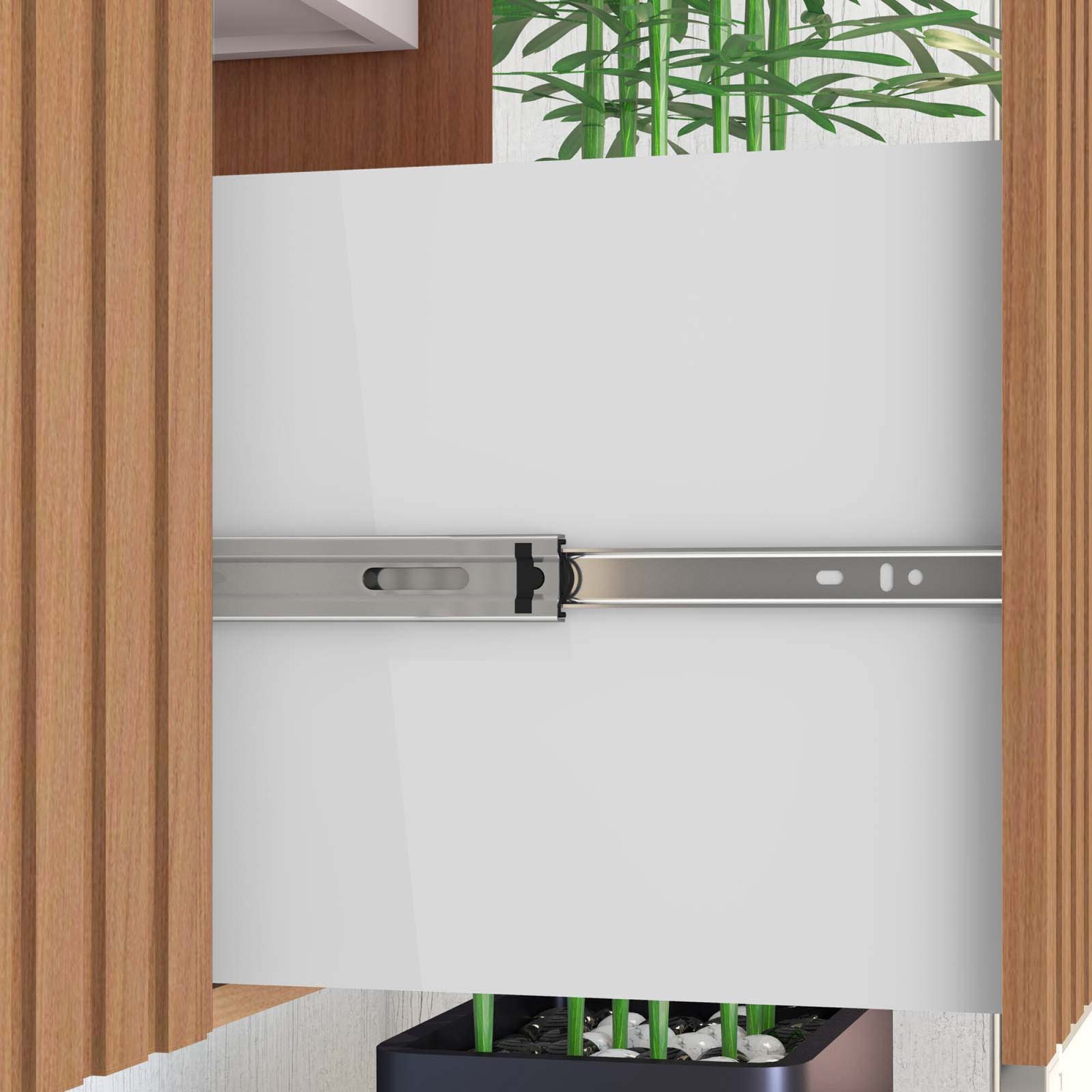 Mueble de baño en MDF de 15mm en pintura UV, una puerta y cajón con pequeño cajón interior. Cuenta con rieles telescópicos y cierre slow motion. El mueble puede amurarse o utilizar pies de apoyo. La bacha, espejo y los pies se venden por separado. Código Kit 5 pies de 7 cm: 258103